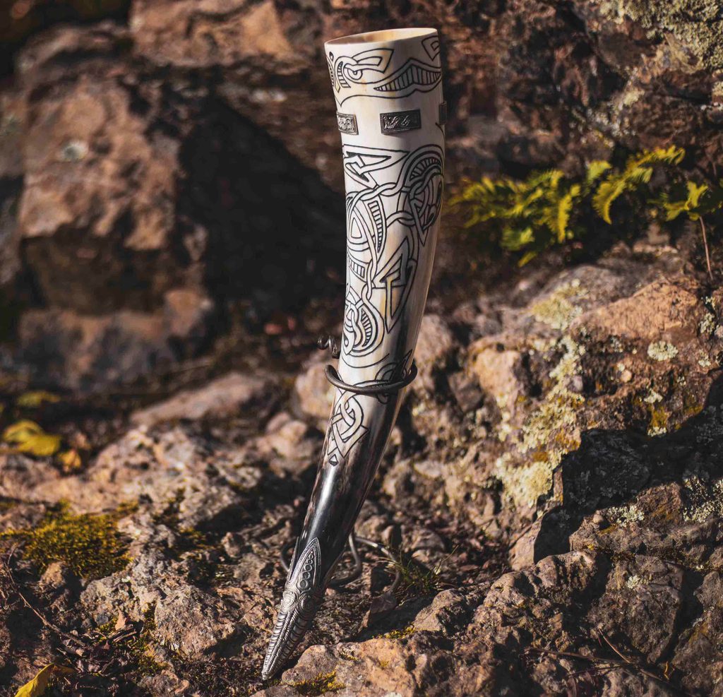 Roh je vyleštěný, ošetřený potravinářským lakem, při výrobě byl použit velmi čistý cín. Avšak kvůli byrokracii prodáváme tento výrobek jako dekorační repliku. Výroba a návrh: Drakkaria.