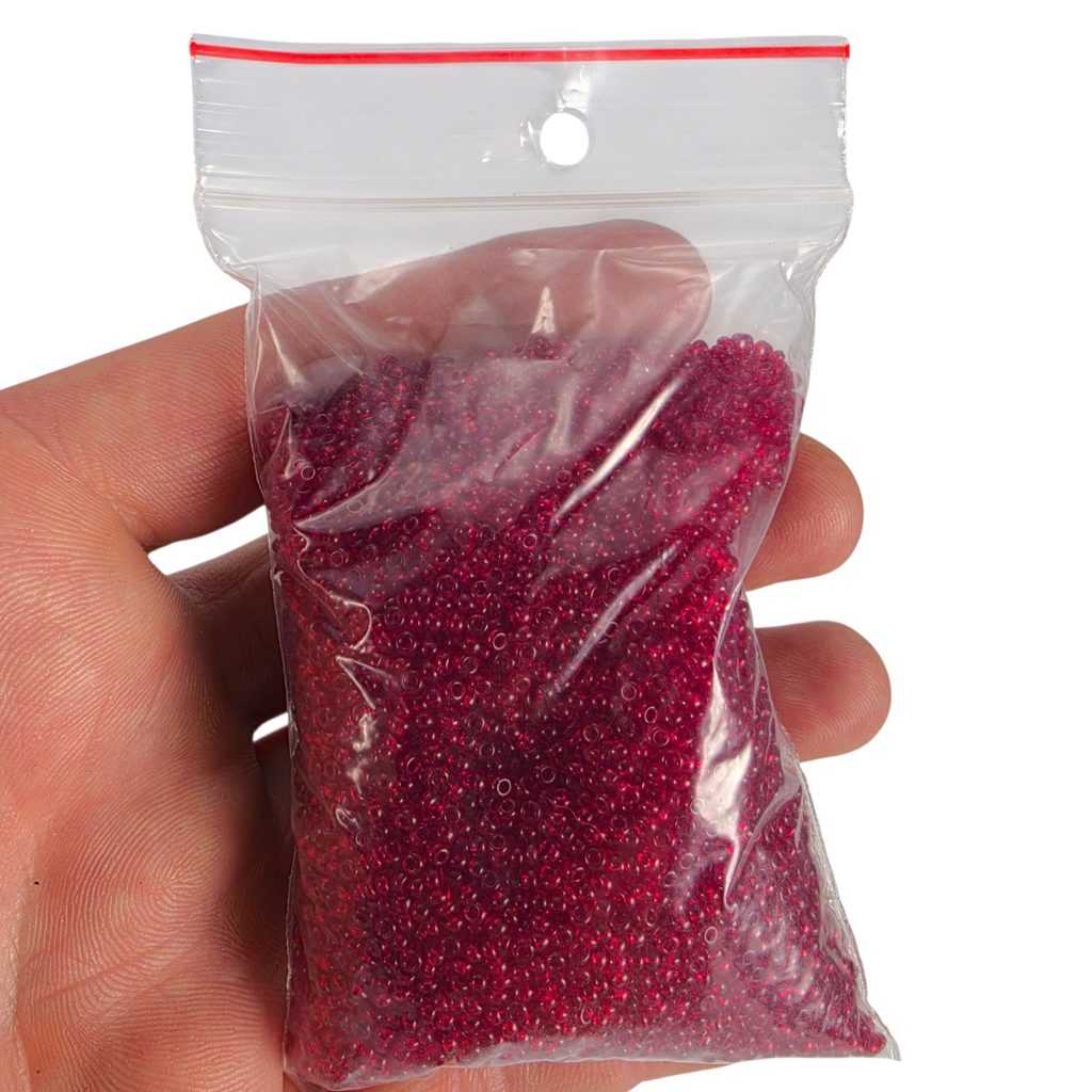 Rokajlové korálky Preciosa, rudá, průhledná 10 / 0