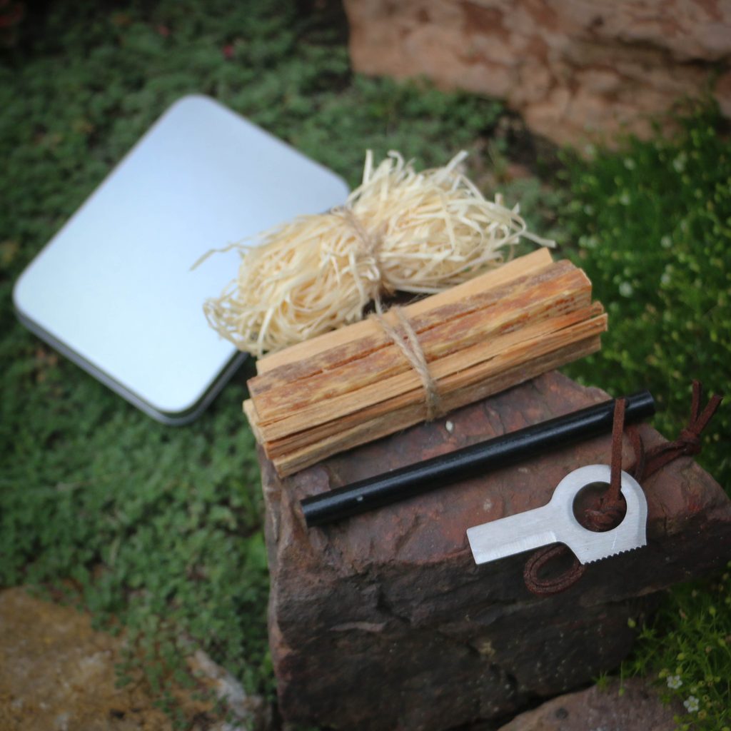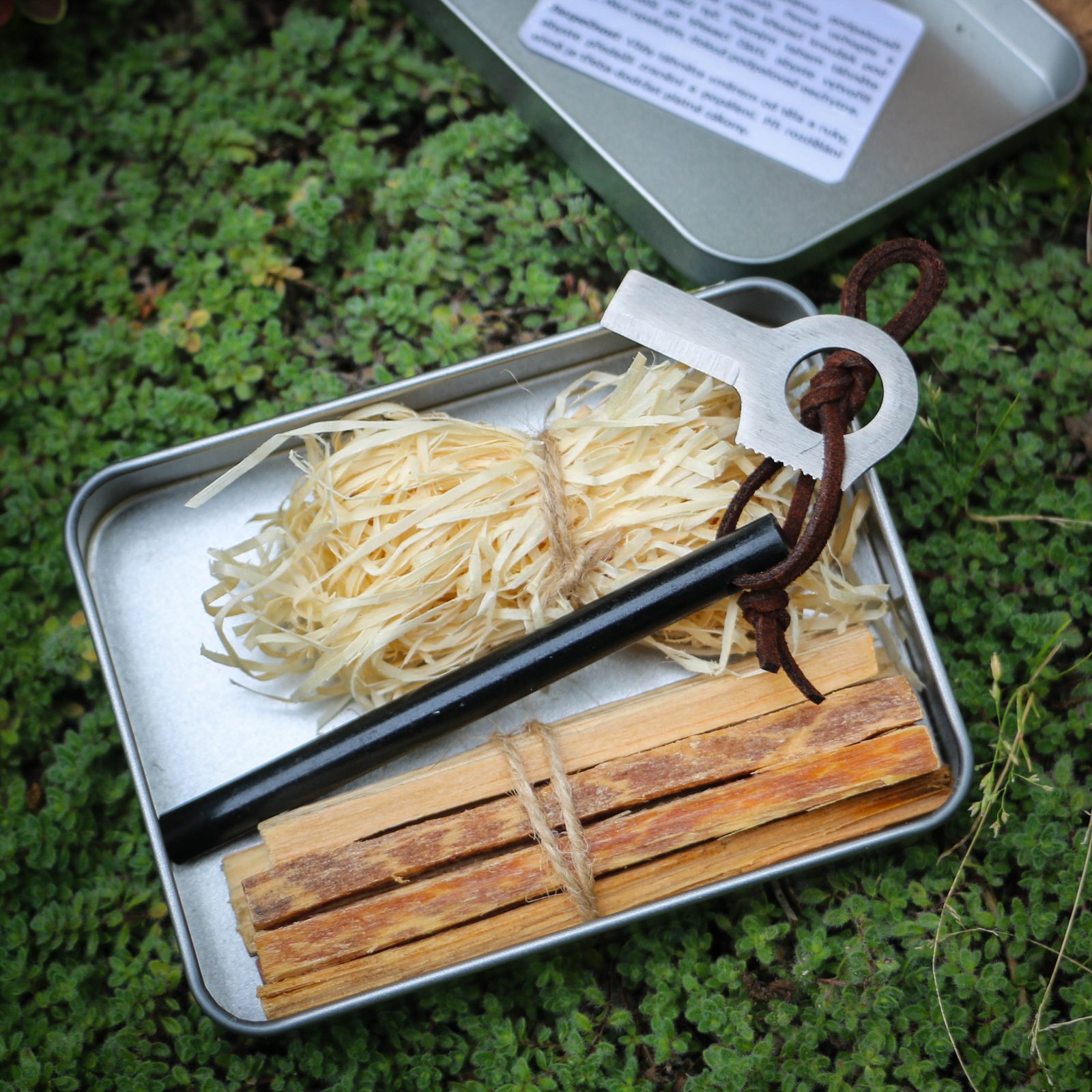 - Obsahuje: Box, tinder sticks (cca 35 g), troud, křesadlo S s rukojetí a sňůrkou, křesací kroužek