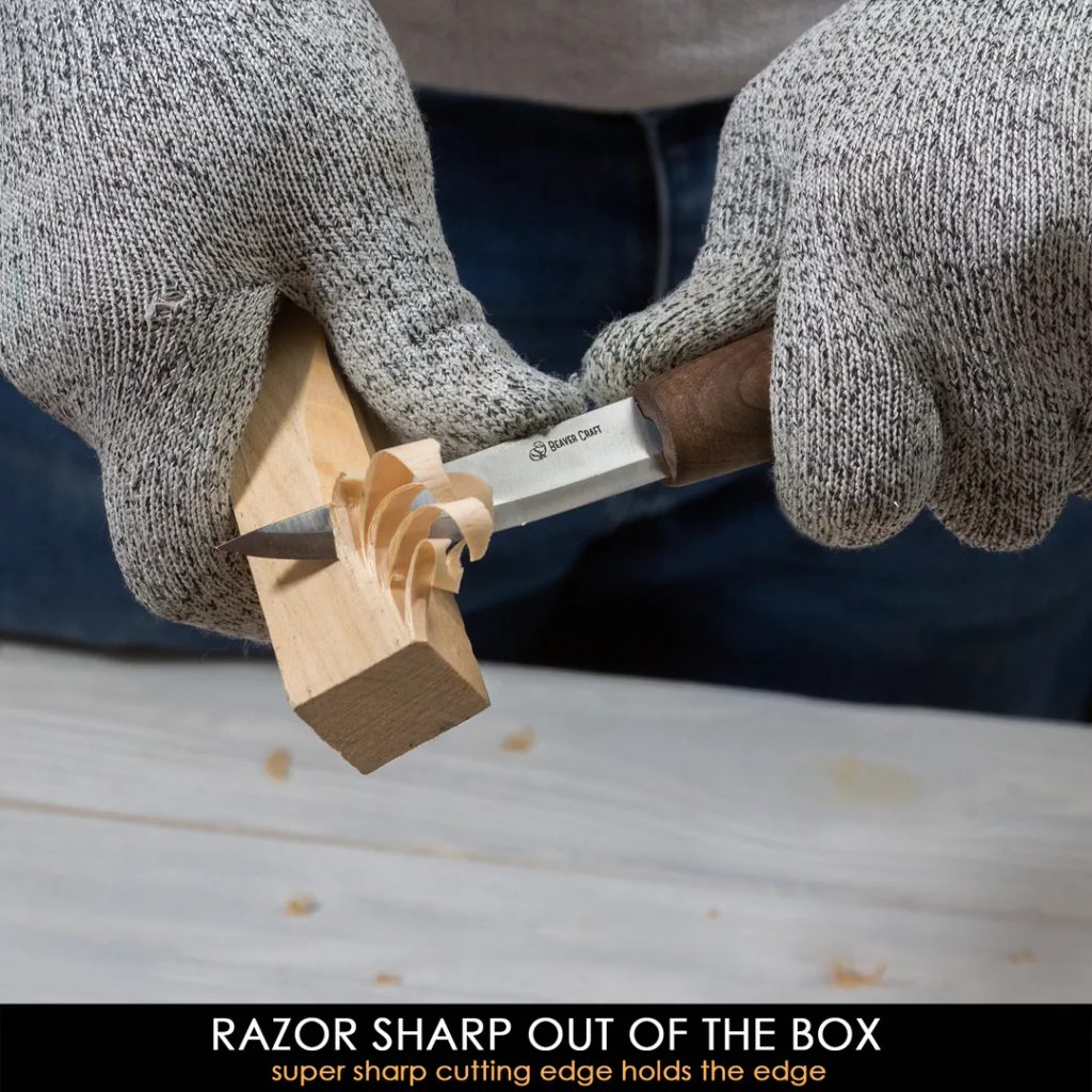 Pořízením této sady získáte vše, co potřebujete pro začátek i pokročilé dřevořezby – tři špičkové nože, brusnou pastu a kožený obtahovací řemen.