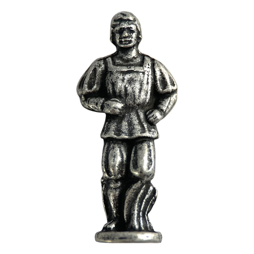 Odlévaná kovová figurka ve středověkém gotickém stylu.