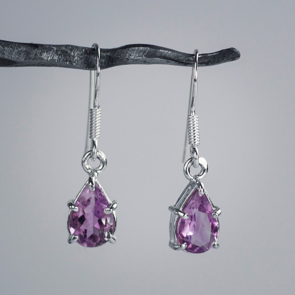 AZTEC, stříbrné náušnice s ametystem, Ag 925
