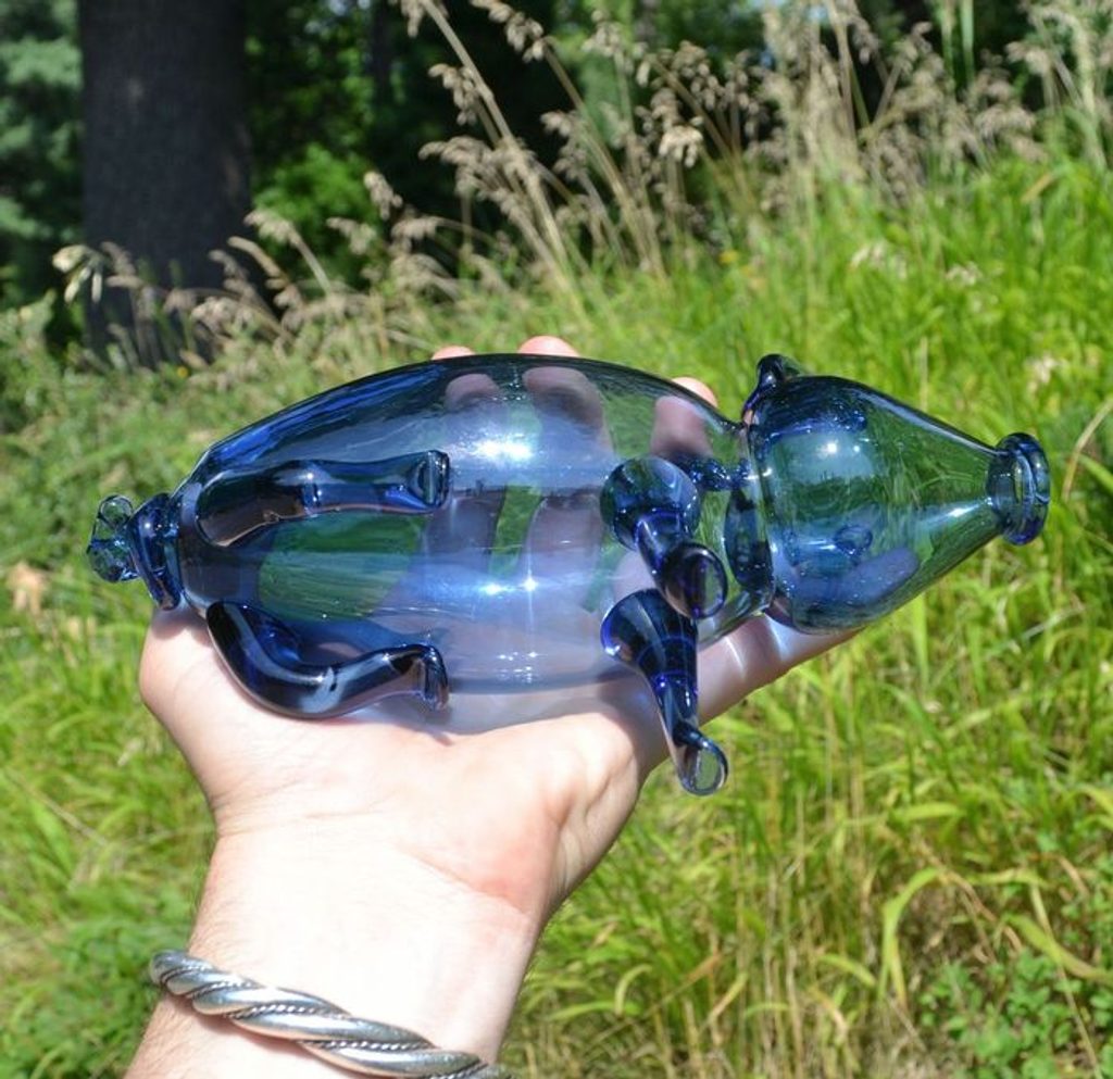 Skleněný kanec, replika - Finsko, okolo roku 1700. Na pití i jako váza. Objem cca 35 cl.