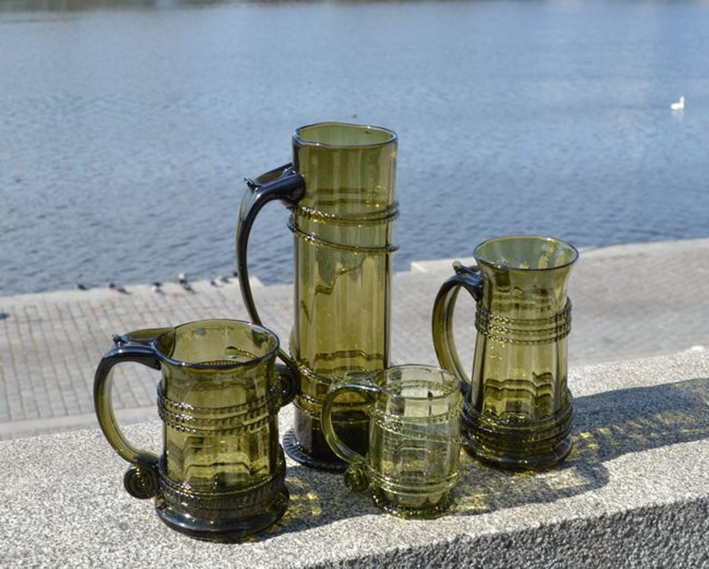 Tupláček dekorovaný renesančním ovíjením. Výška cca 22 cm. České ručně foukané zelené sklo.
