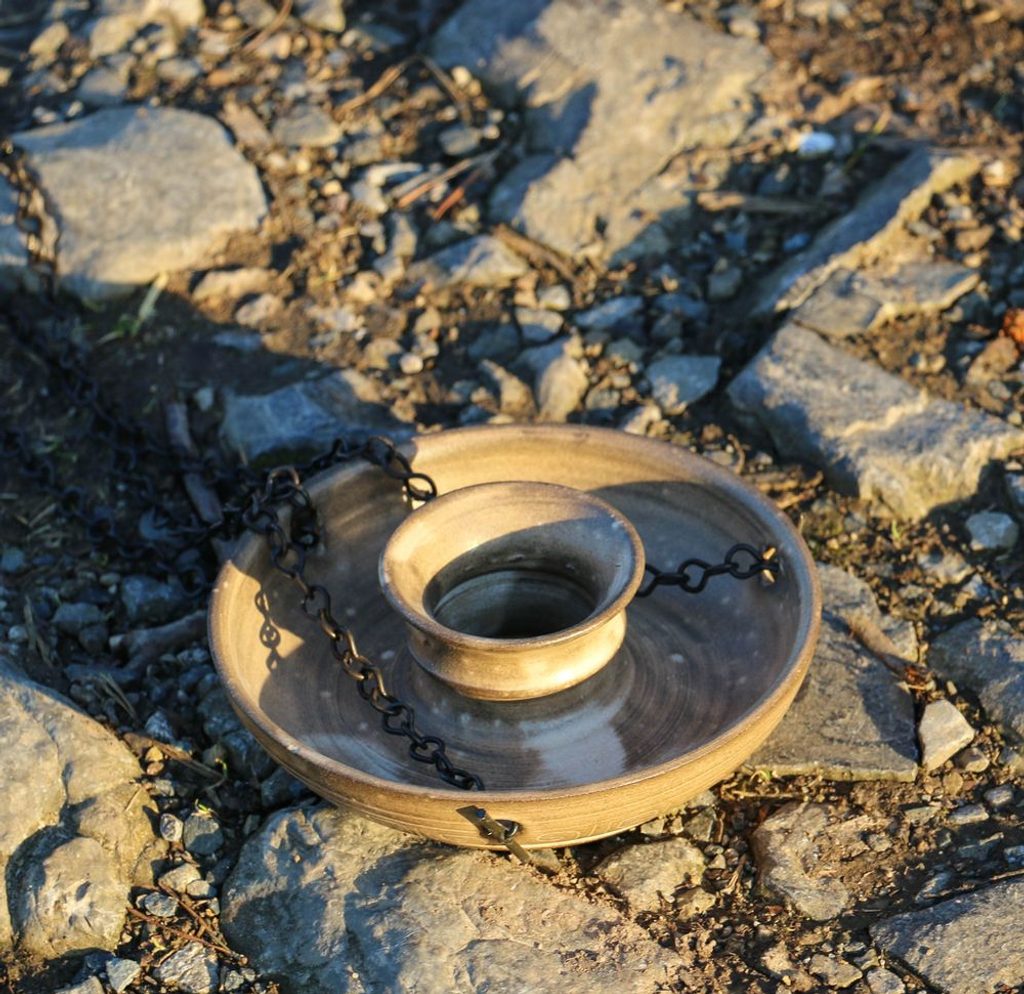 ZÁVĚSNÝ SVÍCEN, keramický. Rozměry: šířka 13 cm. Materiál: keramika, glazura.