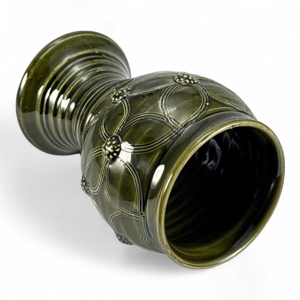 Pohár točený na kruhu v jednom kuse. Z tohoto důvodu má dutou nohu. Historický tvar poháru se výborně hodí na různé ušlechtilé nápoje. Královský požitek je pak samozřejmostí! Pohár je celoplošně glazovaný a zdobený křivoklátským malinovým vzorem. Je pevný díky vysokému výpalu a je možné jej umývat v myčce na nádobí.