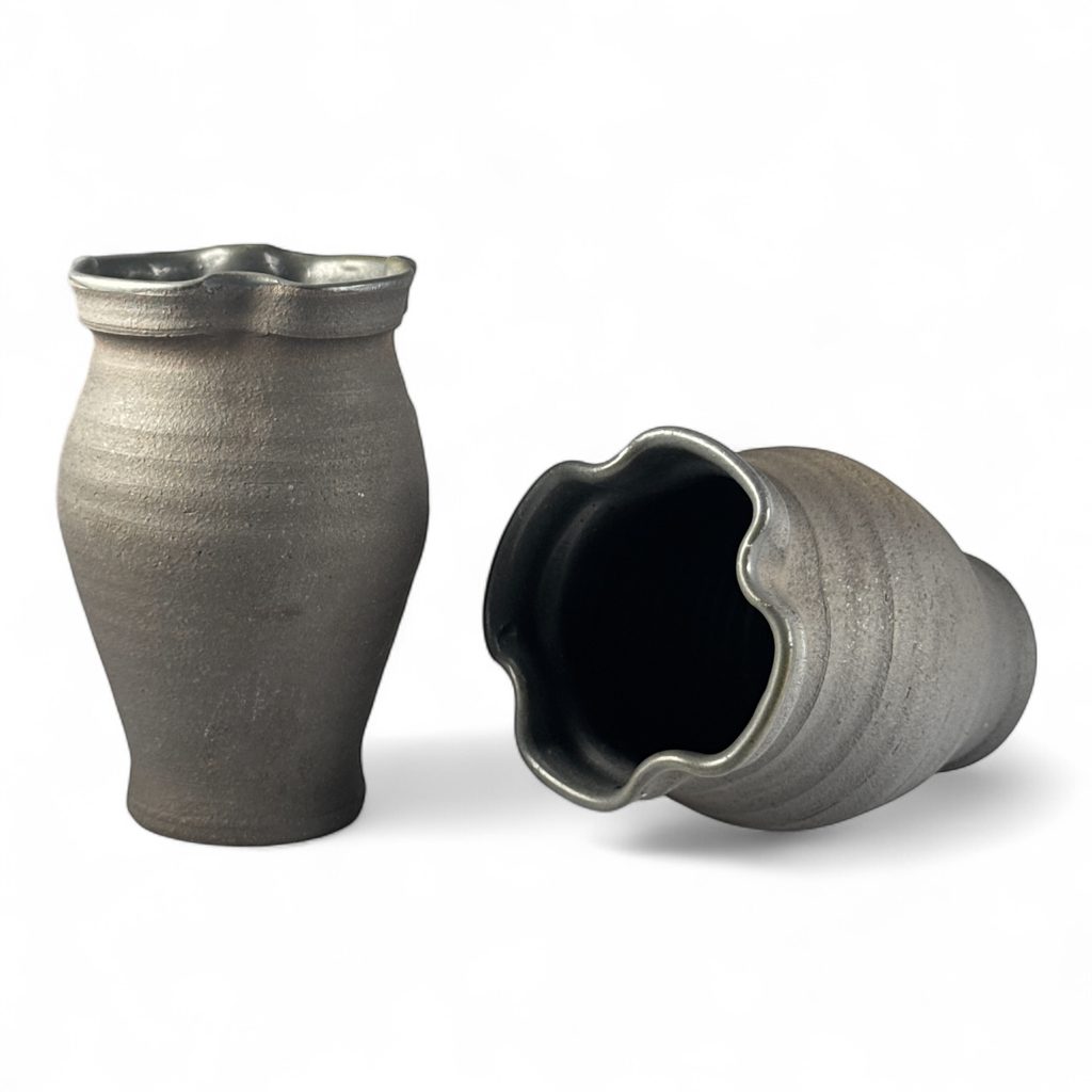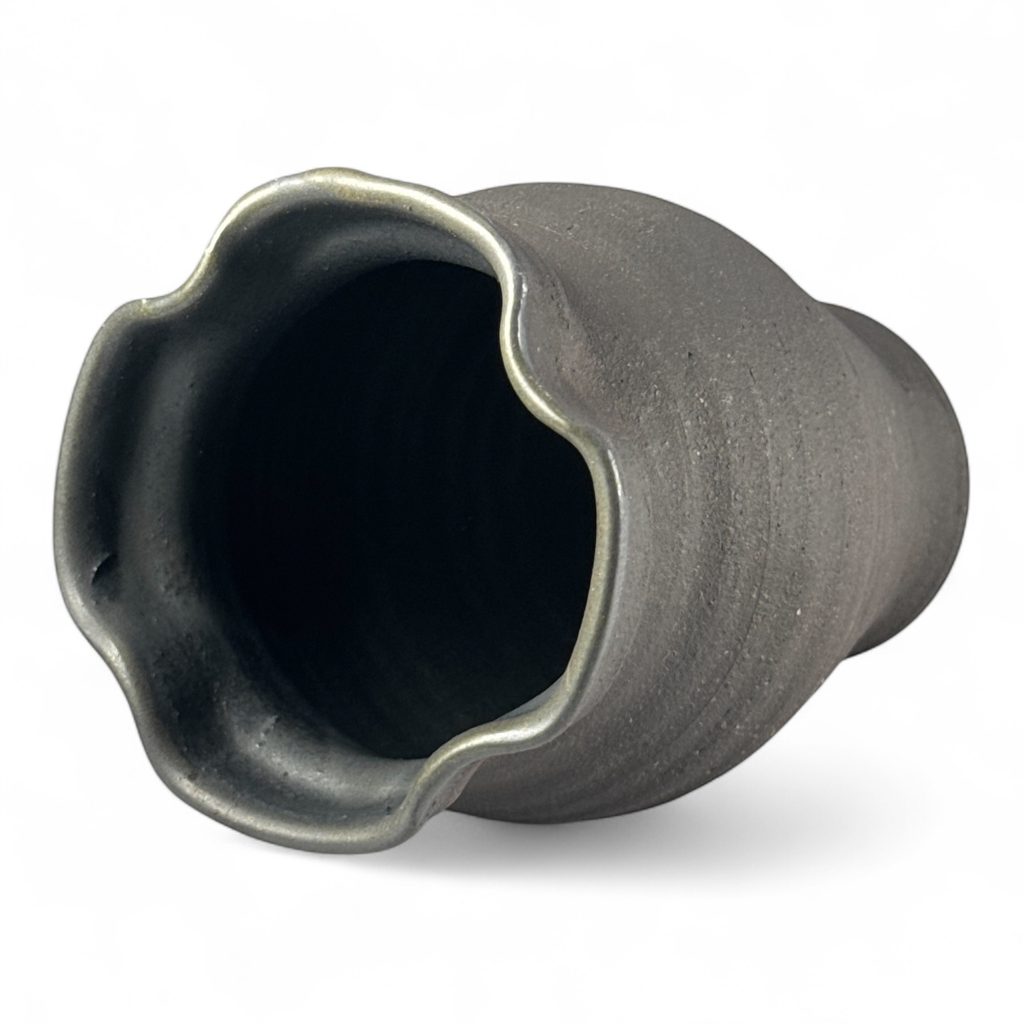 Replika středověkého poháru ze 13. století z Plzně. Objem cca 3 dcl, výška cca 14 cm. Páleno v peci na dřevo za použití dobových výrobních postupů.