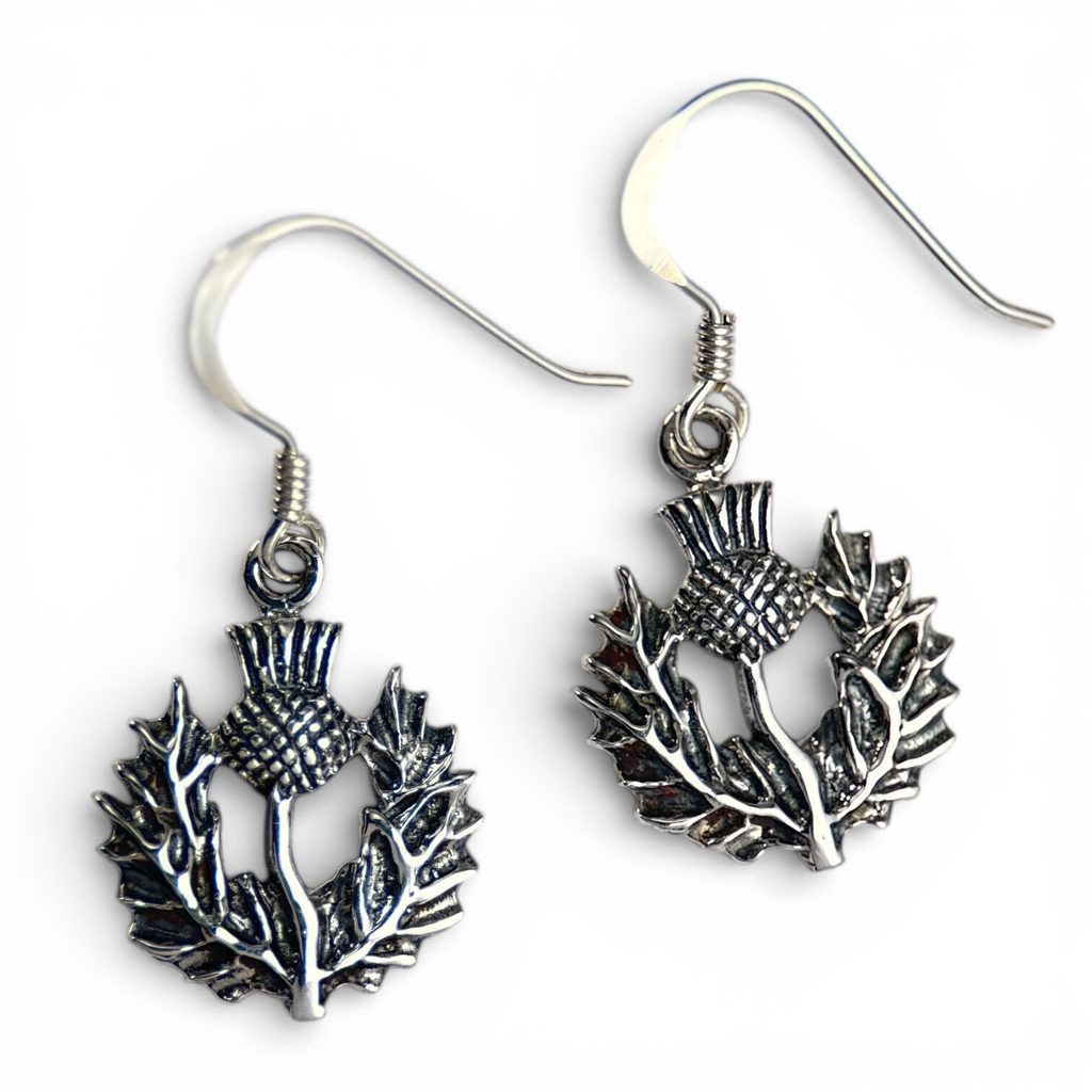 Stříbrné náušnice ve tvaru bodláku - národní rostliny Skotska.