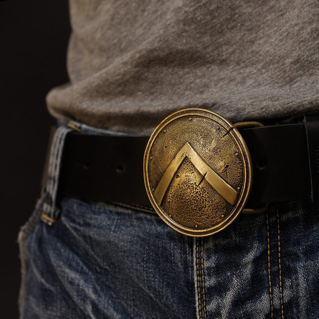 Přezka ztvárňuje štít Aspis, známý také jako Hoplon. Hoplon, lépe známý jako spartánský štít, je kulatý vypouklý štít starověkých řeckých hoplítů. Právě s tímto štítem je spojena slavná fráze „Vrať se se štítem, nebo na něm“. Útěk z bojiště – a tedy i ztráta štítu – byl ve starověkém Řecku považován za jeden z nejhorších zločinů a tvrdě trestán. Válečník se proto musel vrátit buď se štítem (jako vítěz), nebo na štítu (tedy padlý v boji).
