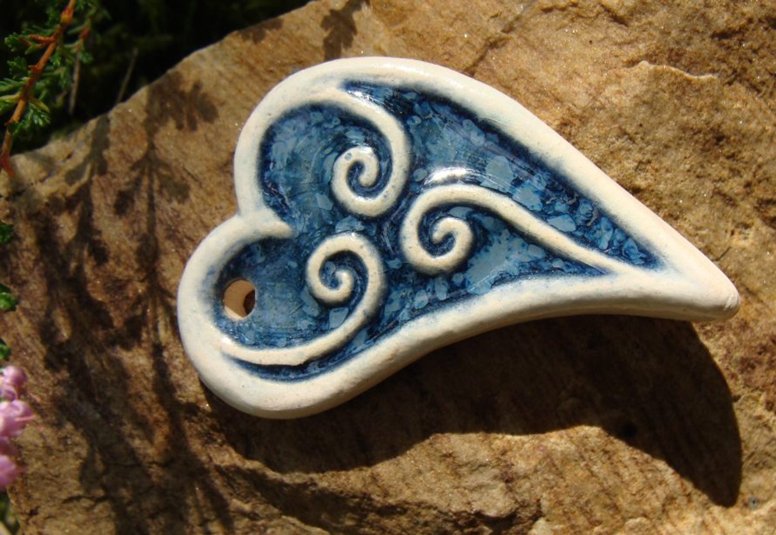 Ručně malovaný keramický šperk. Velikost přibližně: 2,5 x 4,5 cm. Dodáváme včetně kožené šňůrky.