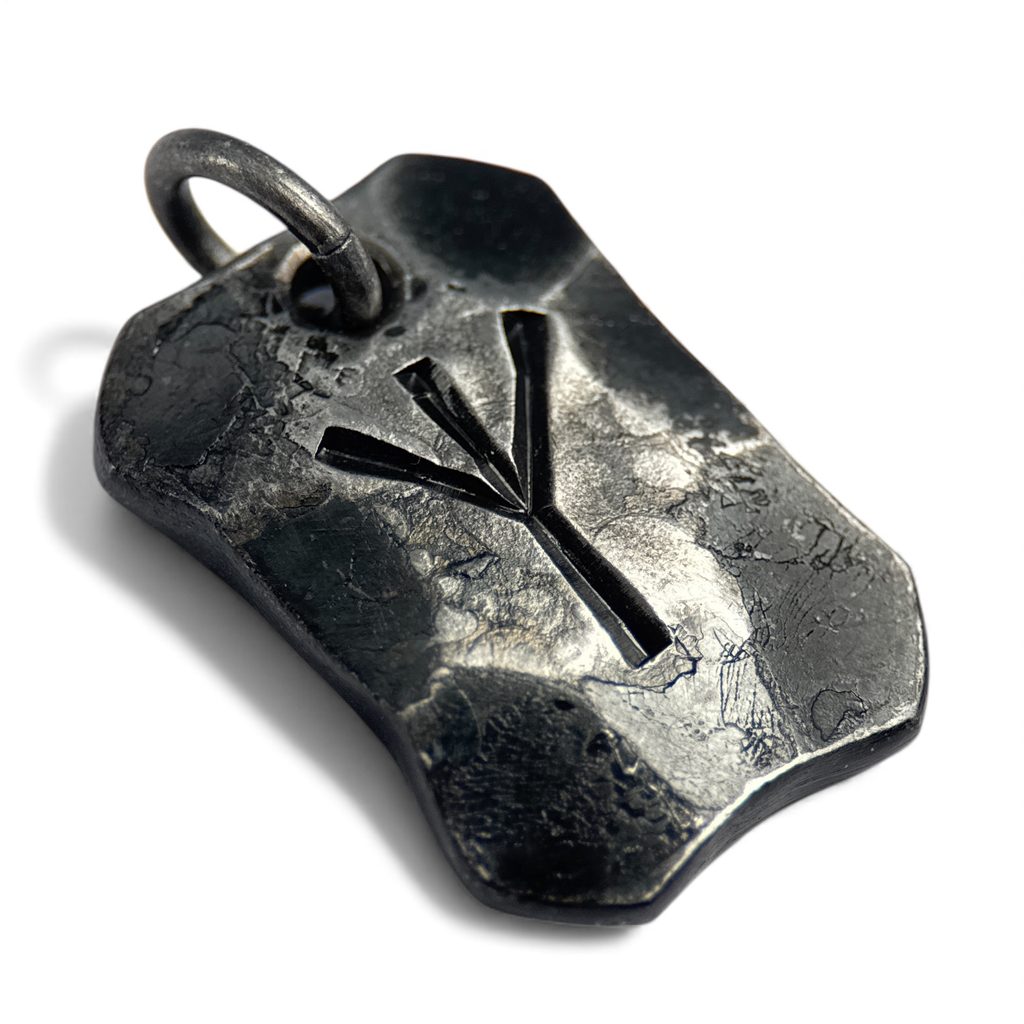 Každý kus je ručně kovaný z oceli, takže nese drobné stopy po práci kováře – díky nim působí autenticky a živě. Povrch je ošetřen antikorozním nátěrem, který zachovává kovový lesk a chrání amulet před vlhkostí. Je vhodný pro každodenní nošení i rituální účely. Výborně se kombinuje s koženou šňůrkou nebo jednoduchým řetízkem.