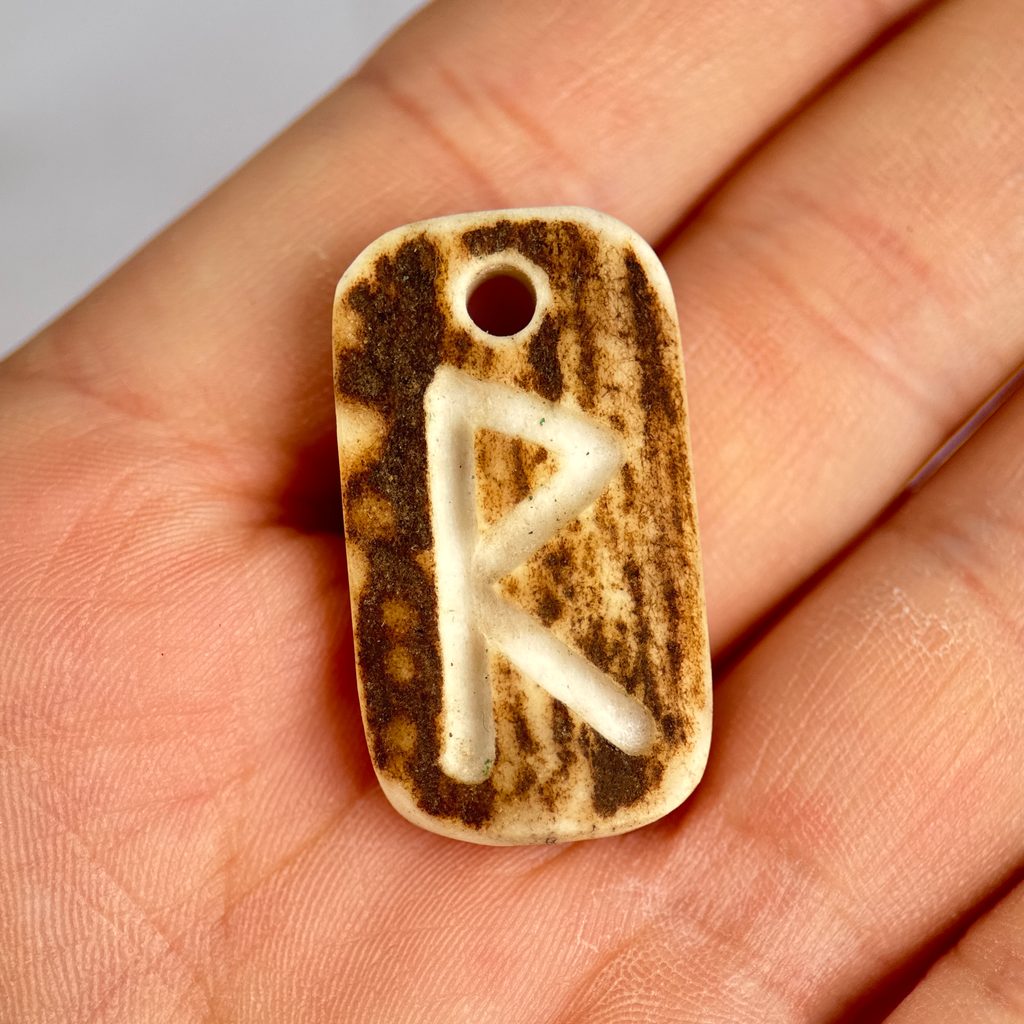 Ručně vyřezávaný runový talisman z jeleního parohu, kožená šňůrka je součástí výrobku. Raidho, doslovný význam "cesta" nebo "vůz", ezoterický význam "cesta, pouť". Raidho je runa uspořádaného pohybu energií v času a prostoru tak, jak jsou vnímány lidským vědomím. Raidho obsahuje vedení na základě činů a ne slov. Využijte tuto runu k poznání směru, jakým se ubírá Váš každodenní život. Nejlepší způsob, jakým tento směr zjistit, je uvědomit si své zájmy, vášně, přání a sny.