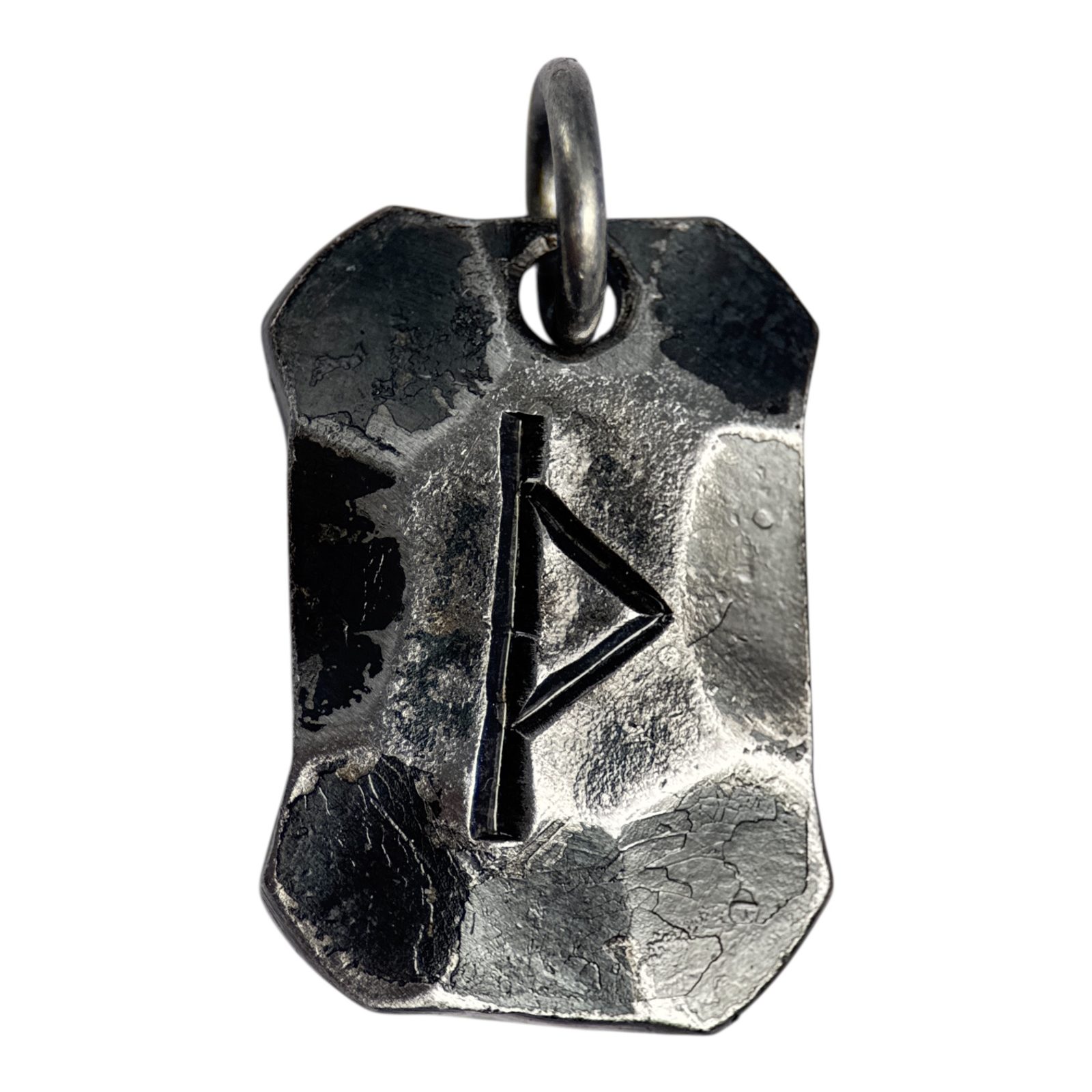 Kovaný talisman, který byl zrozen v plameni s ručně vysekanou runou. Na rozdíl od odlévaných run, je každý kus originálem. Thurisaz – doslova "obrové", ezoterický význam - "silný, odpor, vzdor". Tato runa řídí: