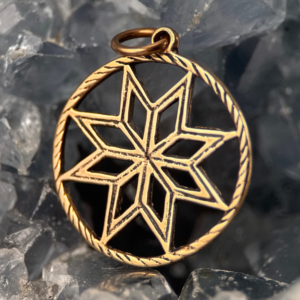 Bronzový přívěšek Alatyr, známý jako Hvězda, nebo Oko, Boha Roda, slovanského Boha Stvořitele. Tento symbol je častý na slovanských výšivkách, rozšířený je v pobaltských zemích.