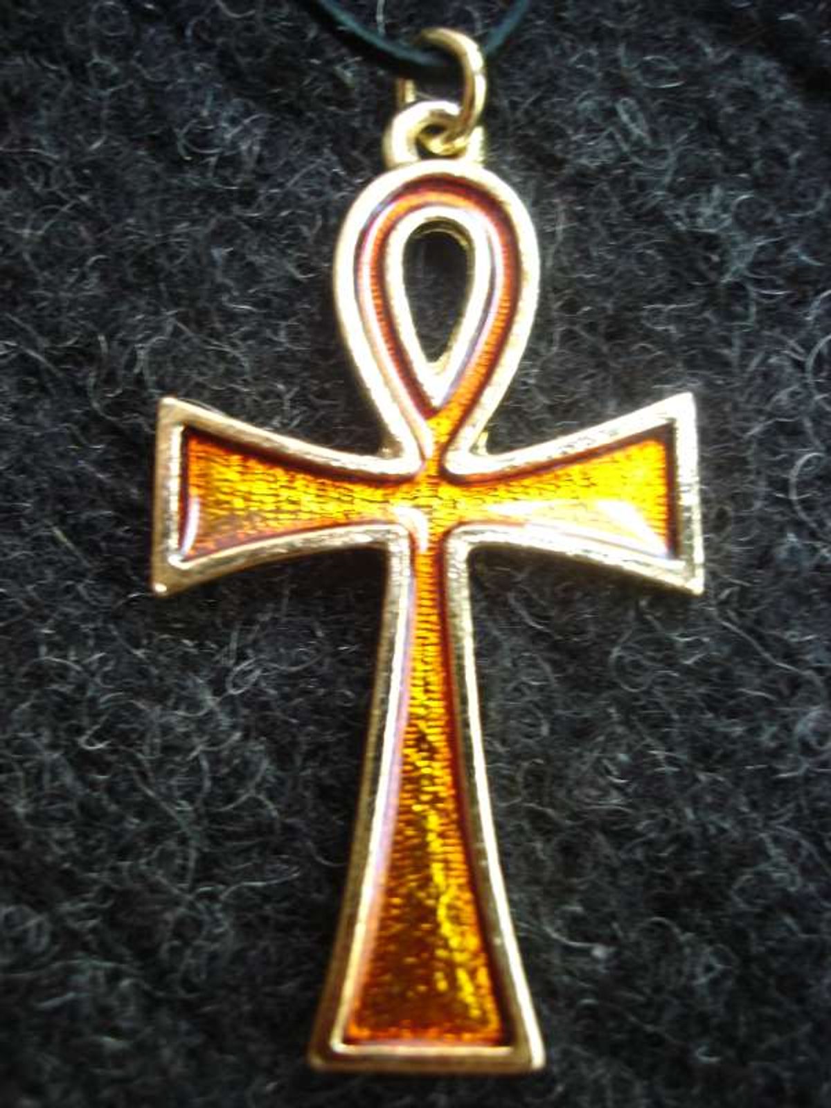 5 cm vysoký staroegyptský znak - zatá barva (vitráž i kov). Egyptský kříž života Anch. V textech hieroglyfů znamená život. V symbolice a pověrách starověkého Egypta má poskytovat dlouhověkost, zdraví, je klíčem do rájě. Má mít schopnost uchovat věčný život a štěstí. Rovněž má navracet energetickou rovnováhu a zbavovat organismus škodlivých vlnění vzniklých z nemocí a z únavy. Materiál: white metal (pewter) a vitráž.