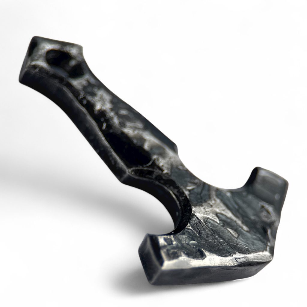 Kované Thorovo kladivo pro ty z Vás, kteří preferujete originalitu ruční práce nad odlévanými šperky. Mjöllnir je magická zbraň, která patří bohu Thorovi. Dle pověsti, uzdvyhne kladivo pouze Thor a jeho syn Magni, k tomu navíc potřebuje kouzelné rukavice a opasek. Mjöllnir znamená v překladu "drtič". Zrozeno v ohni z oceli a uhlí. Velikost: 3.5 x 4.5 cm, průměr očka: 5 mm.