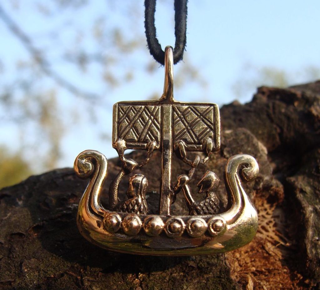 VIKINSKÁ LOĎ z bronzu. Vymodelována na základě vyobrazení z kreseb na kameni z lokality Lillbjors, Gotland (Švédsko), 13. století (Historiska Museet, Stockholm, Švédsko). Velikost cca 2,4 x 2,5 cm... šťastnou plavbu!