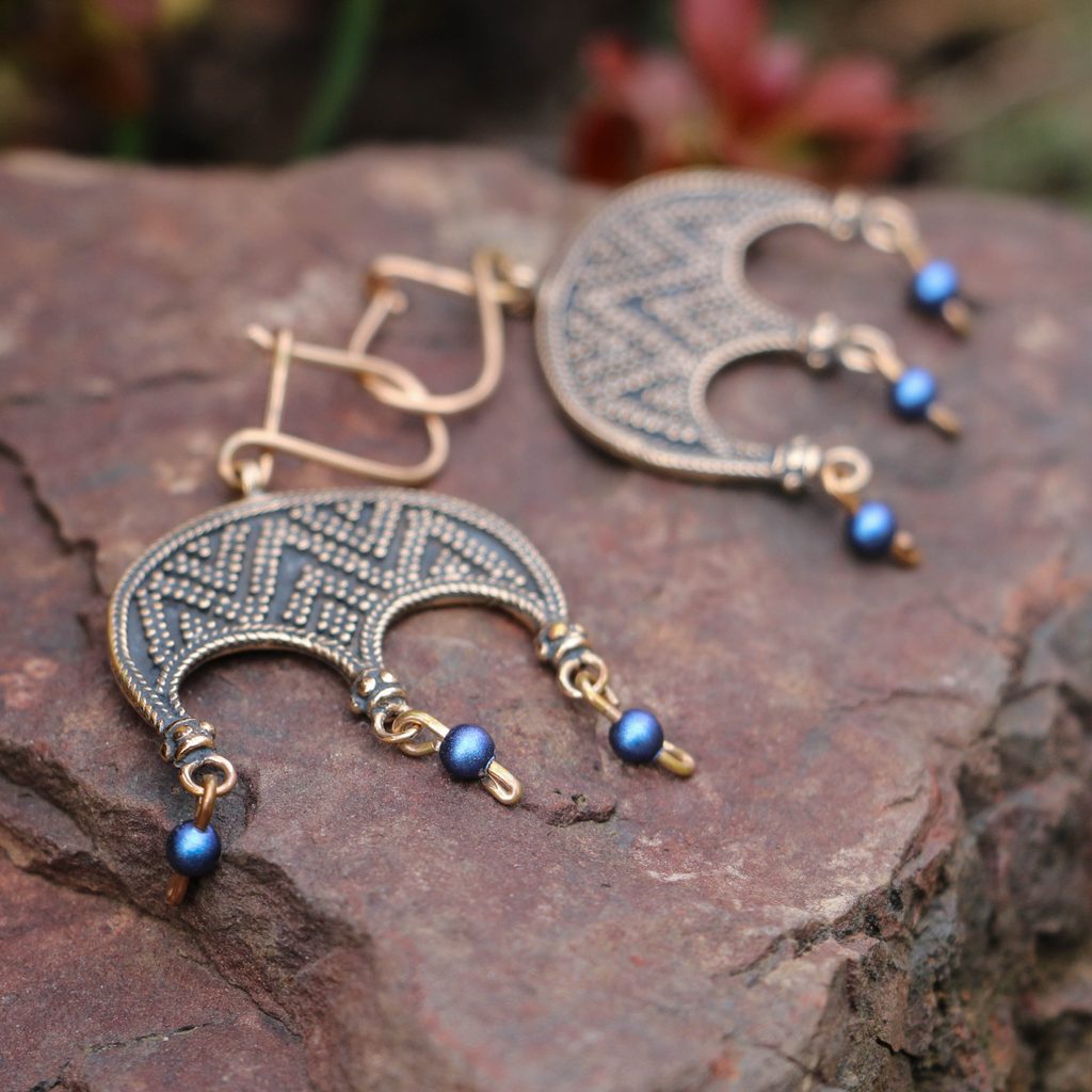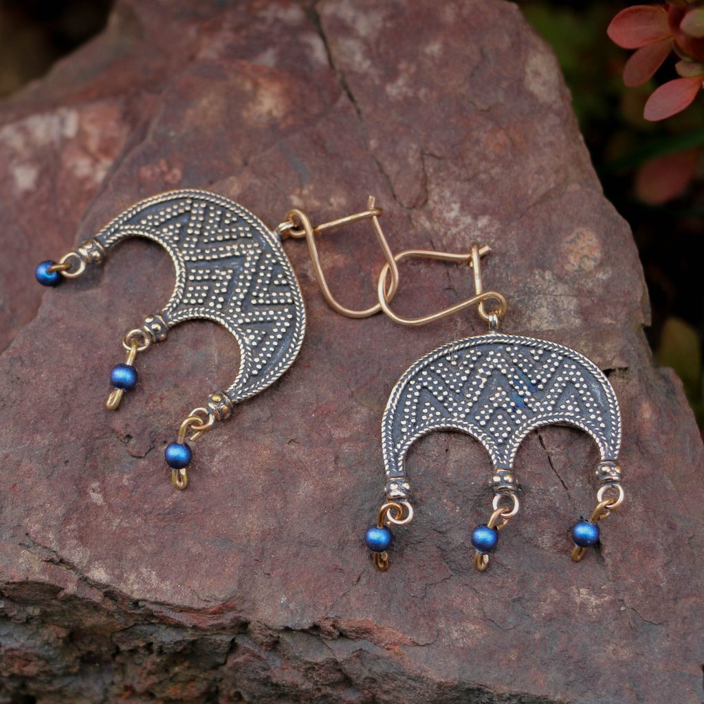 JOVANKA, bronzové náušnice ve tvaru lunice s modrými korálky. Lunice (luna) mohla mít pro naše předky různé významy – zabezpečení plodnosti a růstu, ochrana před zlými silami, označení mladých dívek nebo symbol pro čarodějky. Pravděpodobně však lunice reprezentovala ženu jako takovou. Tuto teorii potvrzuje nález římské odlévací formy, která vedle sebe obsahovala formu na přívěšek ve tvaru falusu, symbolu muže, a formu ve tvaru lunice.