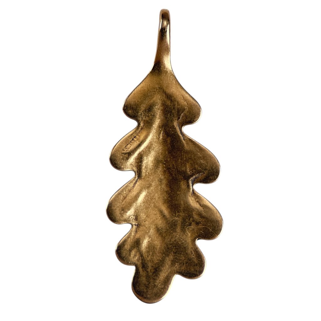 Bronzový přívěšek Dubový list. Jako v mnoha starověkých civilizacích je v Slovanské mytologii svět zobrazen jako posvátný strom, nebo Strom života. Tímto je obvykle dub.