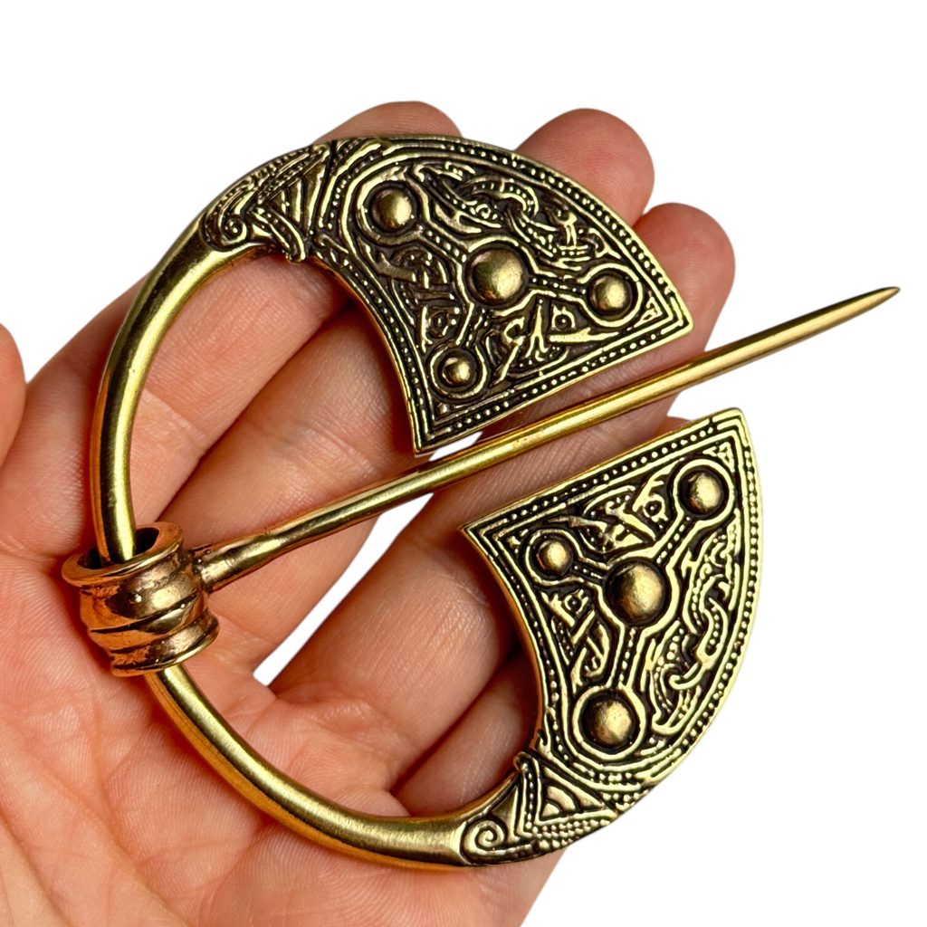 Replika vikinské brože, která byla nalezena v klášteře nedaleko Kilkenny v Irsku. Pochází cca z 9. či 10. století. Podobné brože kromě vikingů nosili i Irové a Skotové.Lito na ztracený vosk.