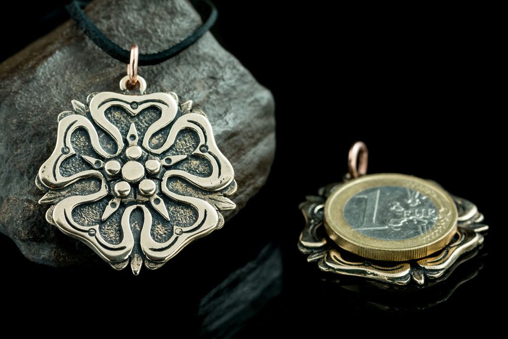 Pětilistá Růže jako symbol Pánů z Rožmberka. Rožmberkové byl starý český šlechtický rod, jeden z rodů Vítkovců, který do 14. století vybudoval silné Rožmberské dominium. Praotec rodu Vítkovců - Vítek I. z Prčice měl podle legendy pod hradem v Českém Krumlově rozdělit 5 růží mezi své syny.