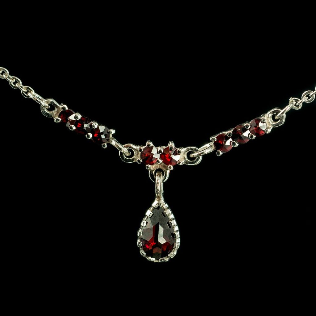 Stříbrný náhrdelník s granátem. Stříbrný řetízek v ceně.
