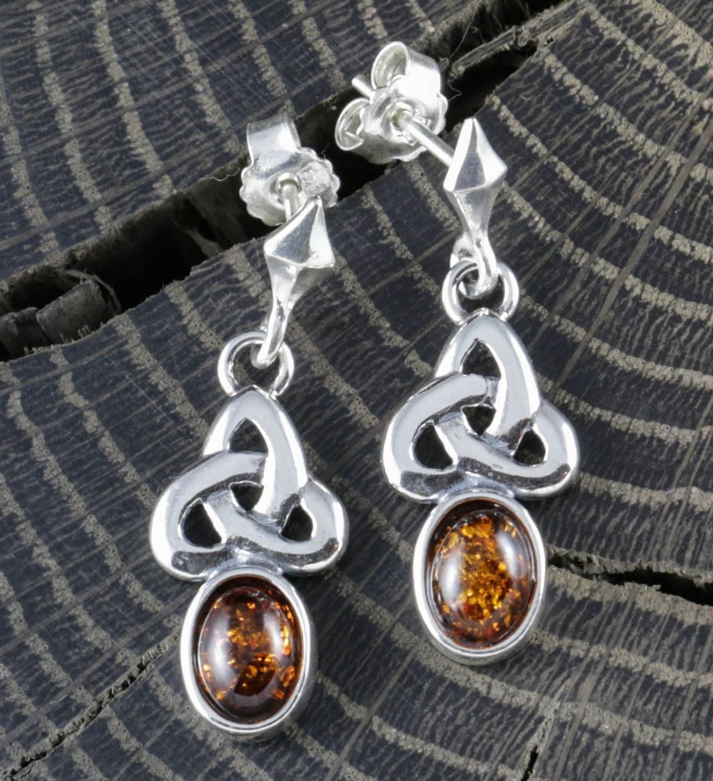 CELTICA, stříbrné náušnice s jantarem, Ag 925