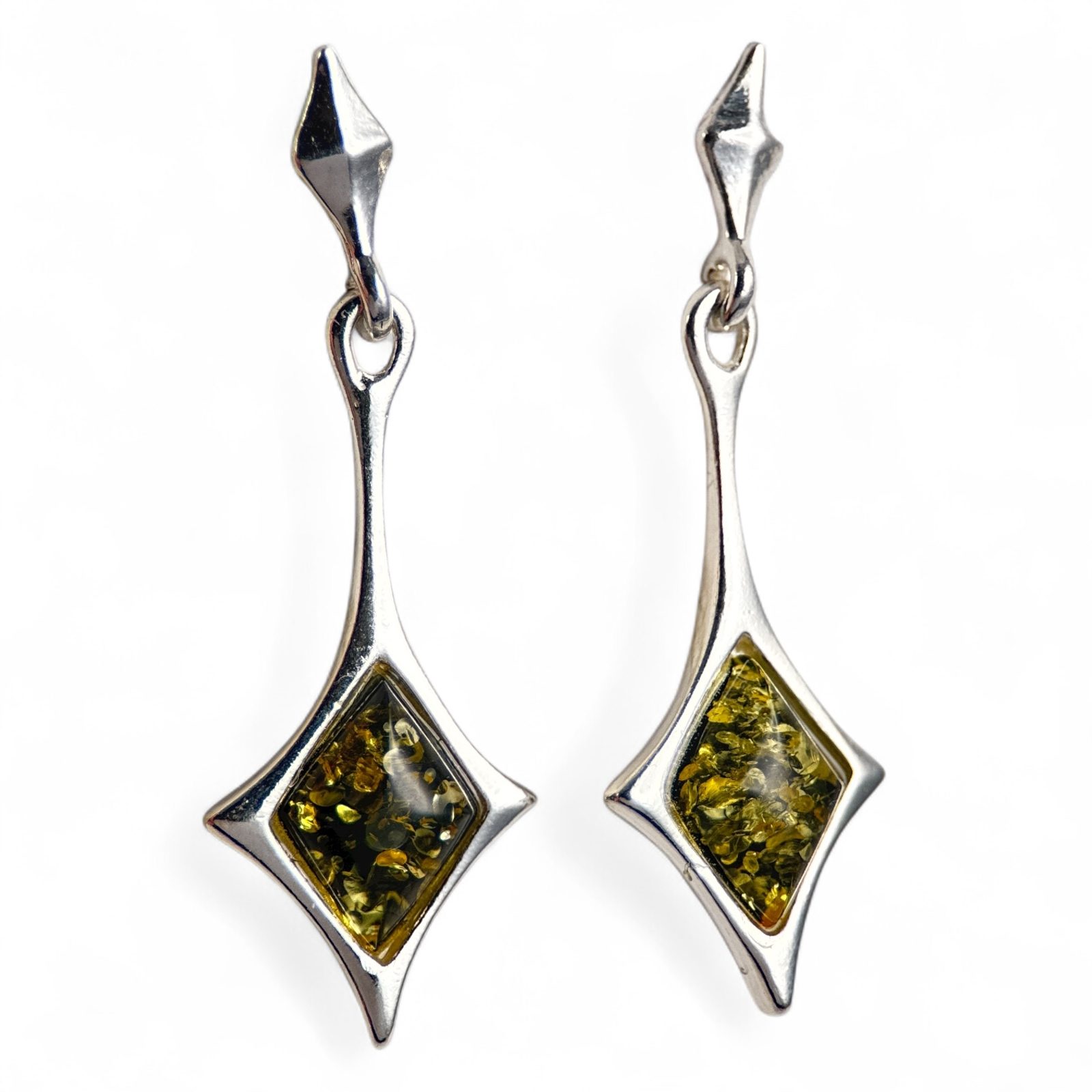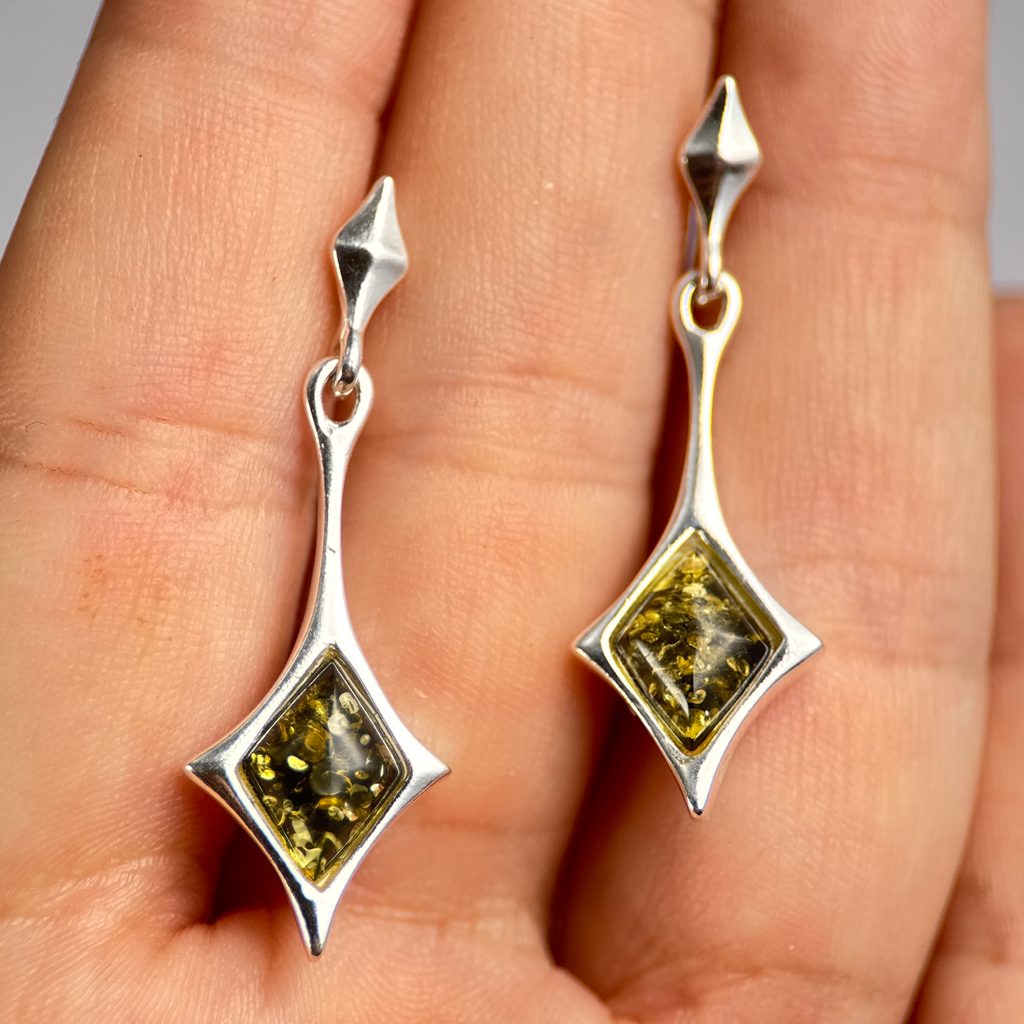 Luxusní stříbrné náušnice z baltského jantaru. Moderní vzhled a kvalitní zpracování.