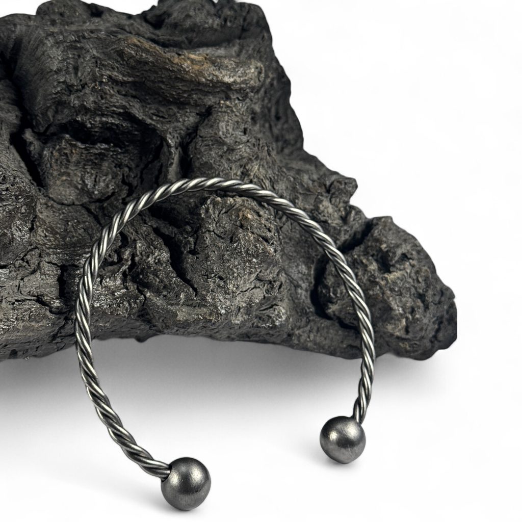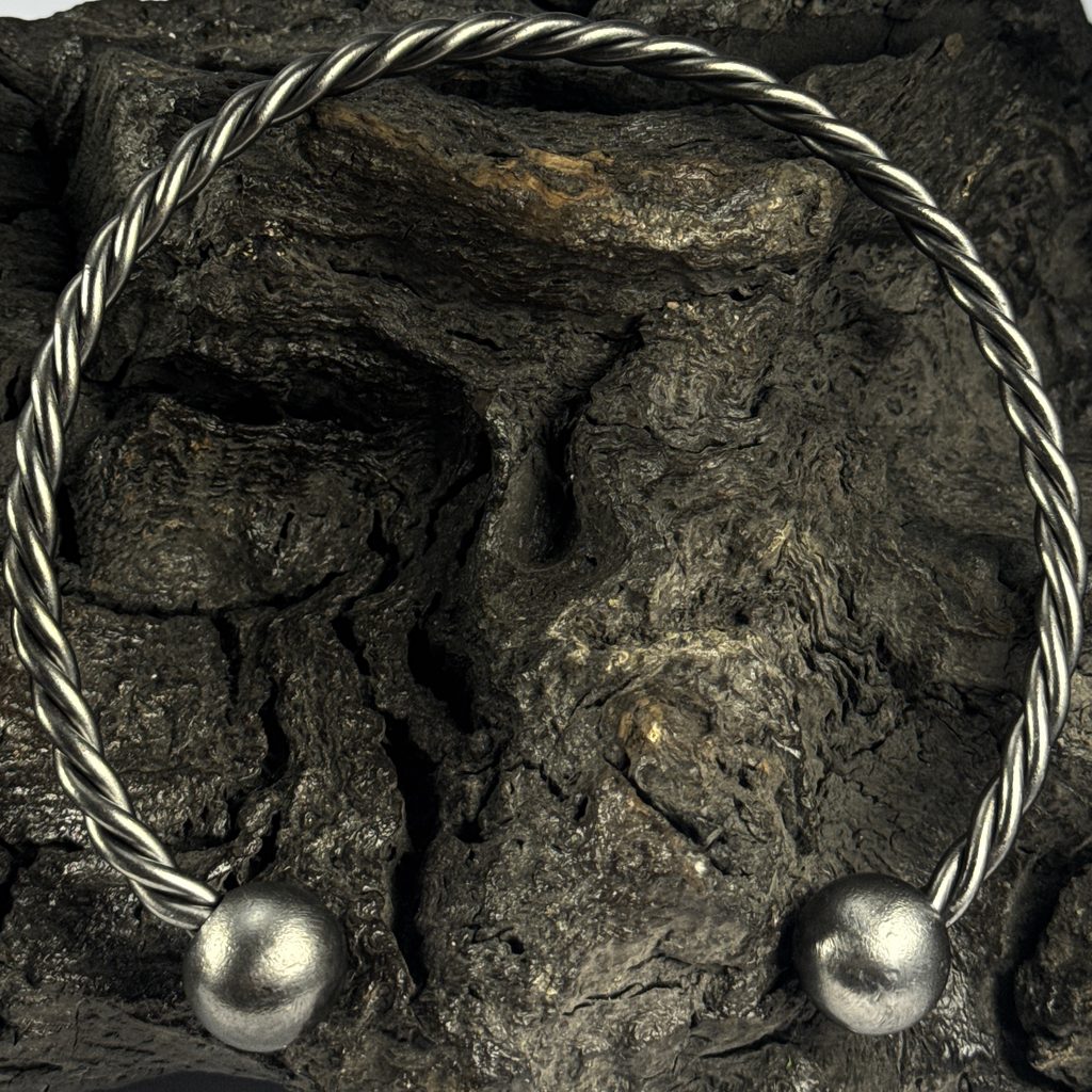 Kovaný nákčník - torques, šperk vládců, reků, druidů, ale i Bohů starověku a raného středověku. Nyní se tímto šperkem můžete honosit i Vy. Nákrčník je přizpůsoben pohodlnému nošení i nasazení. Je lehce otvíratelný, dobře pruží a můžete si sami jeho velikost přizpůsobit. Šperk je ve výhni kovaný, černěný dubovou kůrou a lakem ošetřen proti korozi.