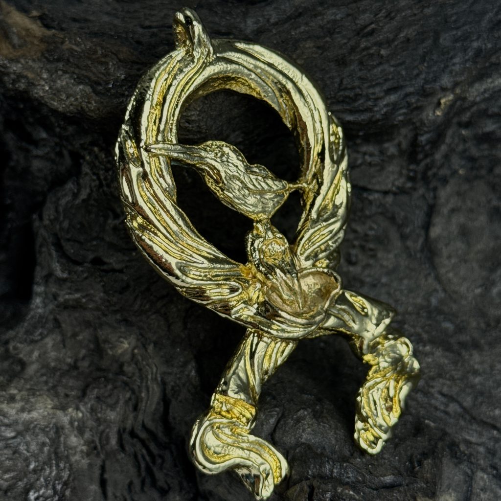 Pozlacený znak Václava IV. - ledňáček ve věníku. Ve znaku byly byly původně ledňáčci dva, kteří se dotýkali zobáčky v písmenu E. Ledňáček je symbolem věrné lásky a manželství, věník je prastarým symbolem lásky.