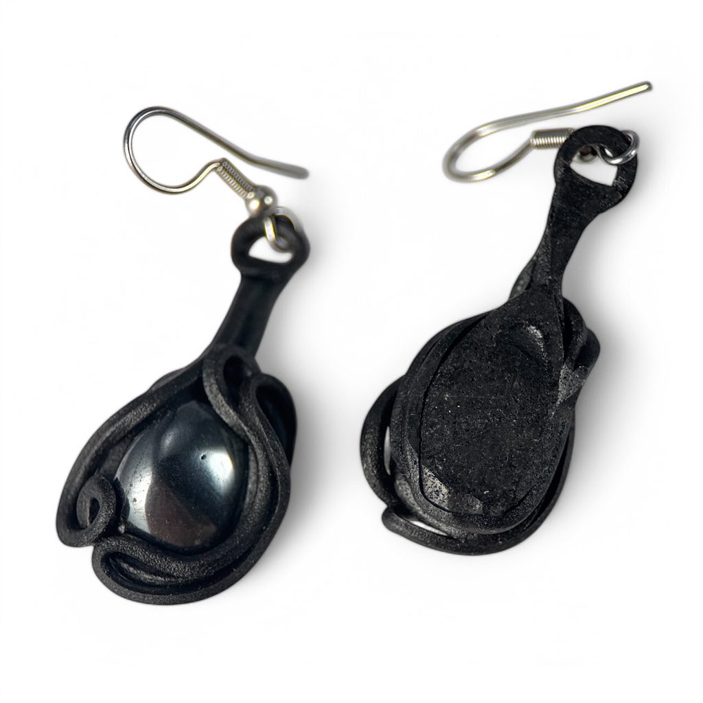 Náušnice s opakním hematitem a nealergenními háčky.