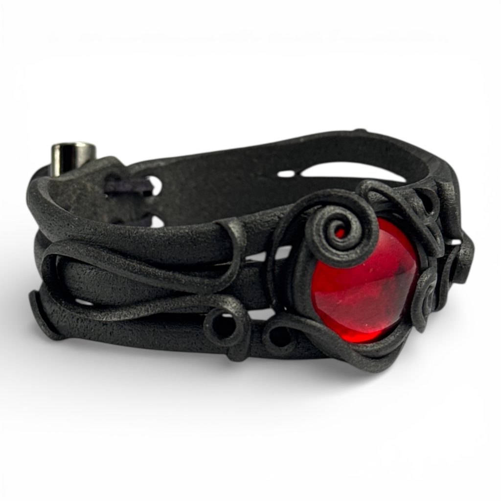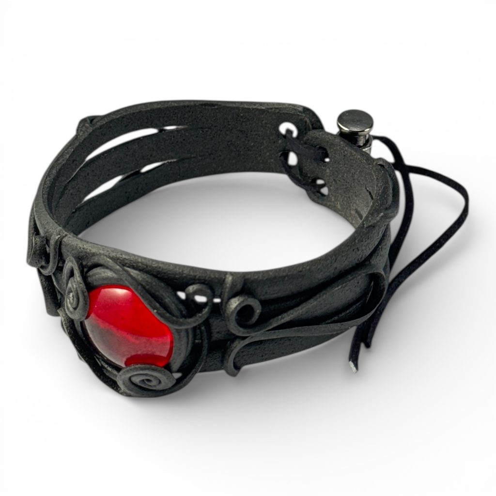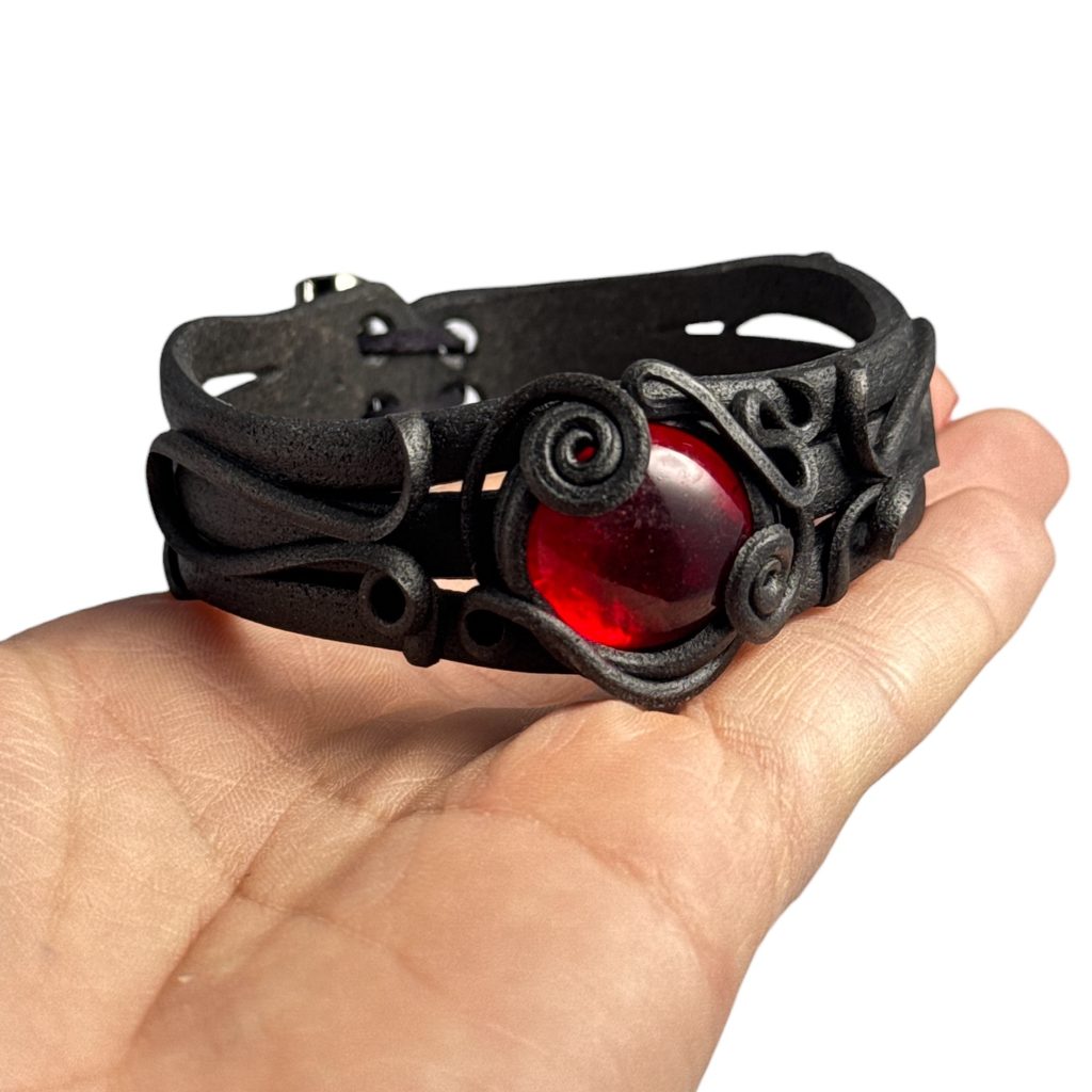 Roztažitelný náramek se sklíčkem v umělecké pryskyřici se šněrováním.