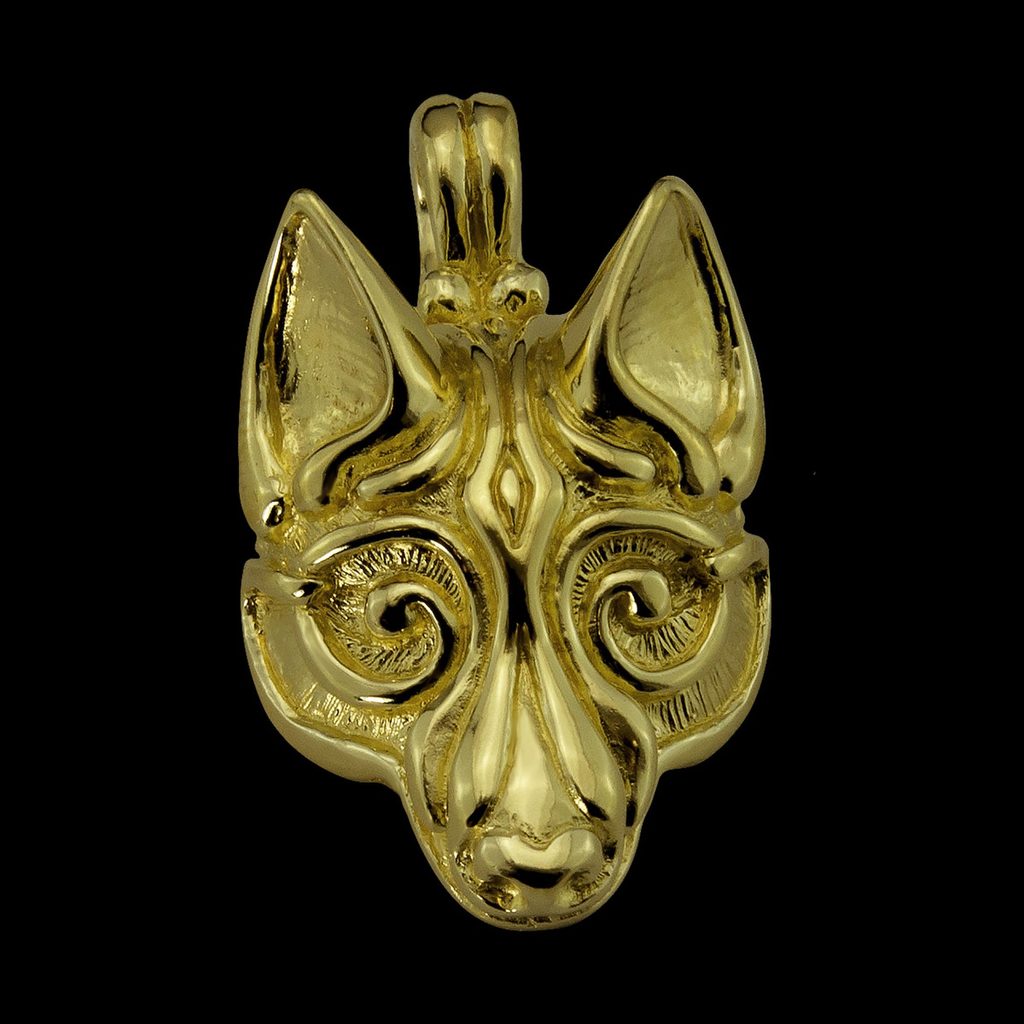 Vikinský VLK FENRIR, 14 karátový zlatý přívěšek inspirován vikinským výtvarným stylem Borre (podle stejnojmenné lokality v Norsku, 9.-10. století). Fenrir je nejstarší syn boha Lokiho a obryně Angrbody. Bohové Fenrira spoutali, jeho osudem však je růst tak dlouho, dokud pouta nepovolí, a poté za Ragnaröku spolknout Ódina. Vlk symbolizuje sílu, vytrvalost a svobodu, je zároveň i tvorem společenským, takže je mnohdy ztotožňován se kmenovým zvířetem.
