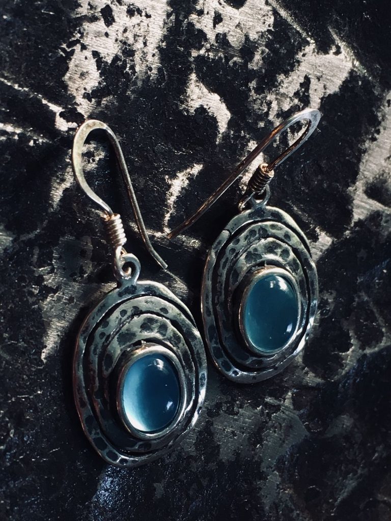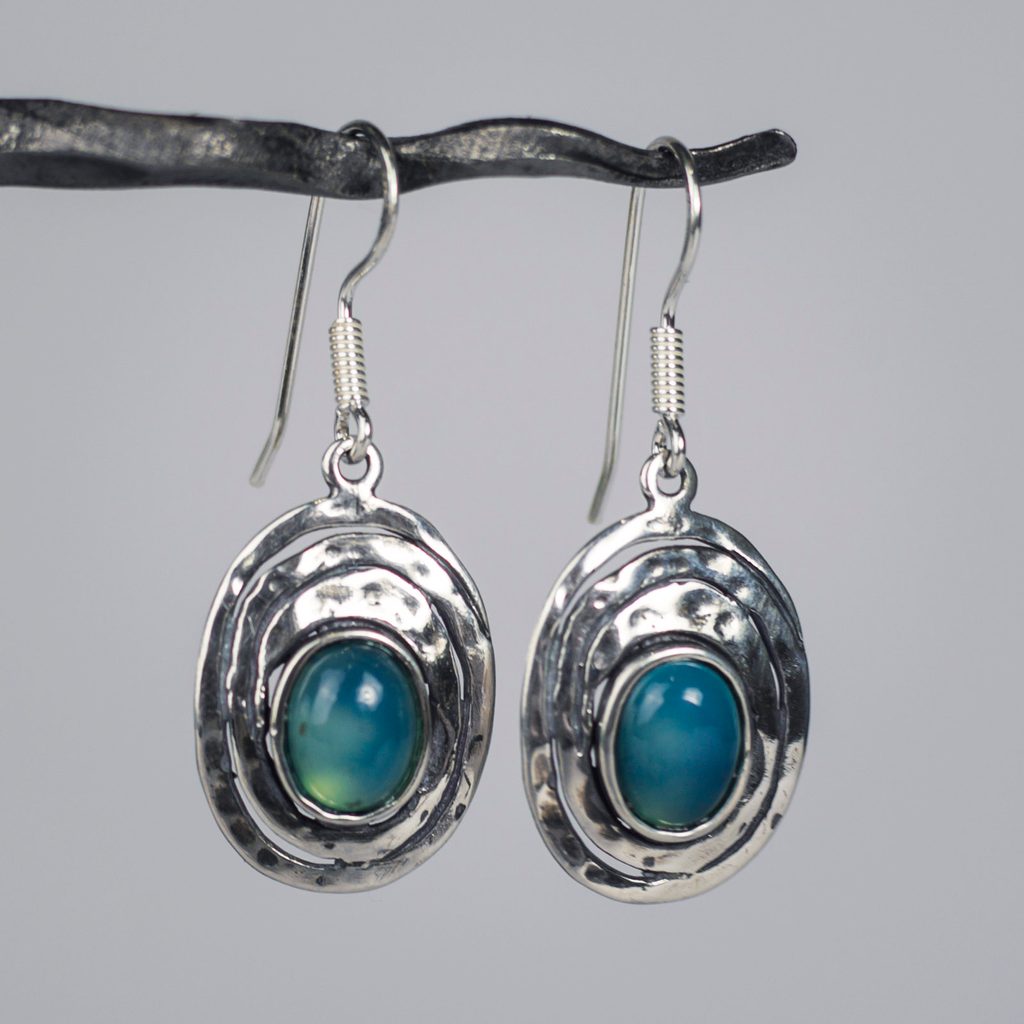 AQUARIUS, stříbrné náušnice s modrým chalcedonem, Ag 925