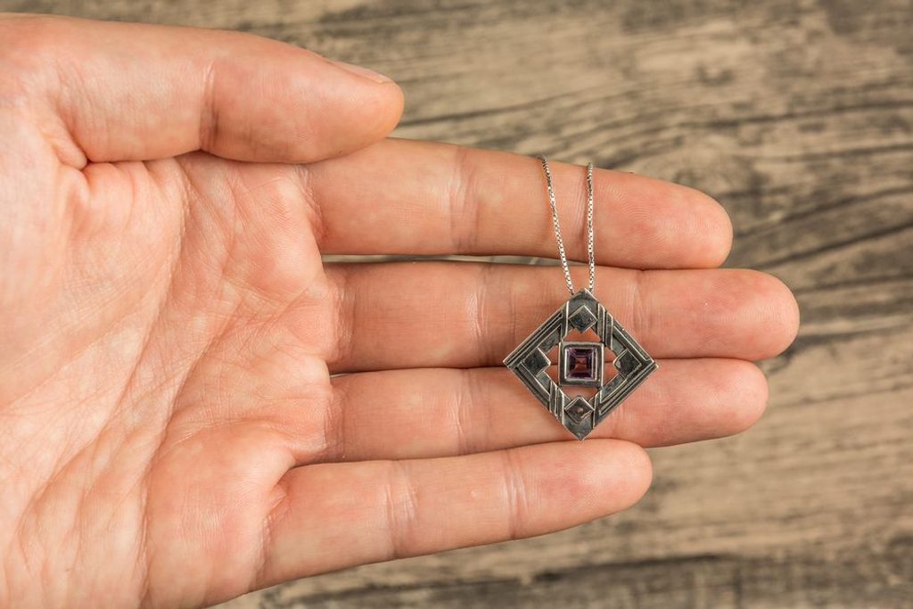 PRAGA, středověký přívěsek, ametyst, stříbro 925/1000