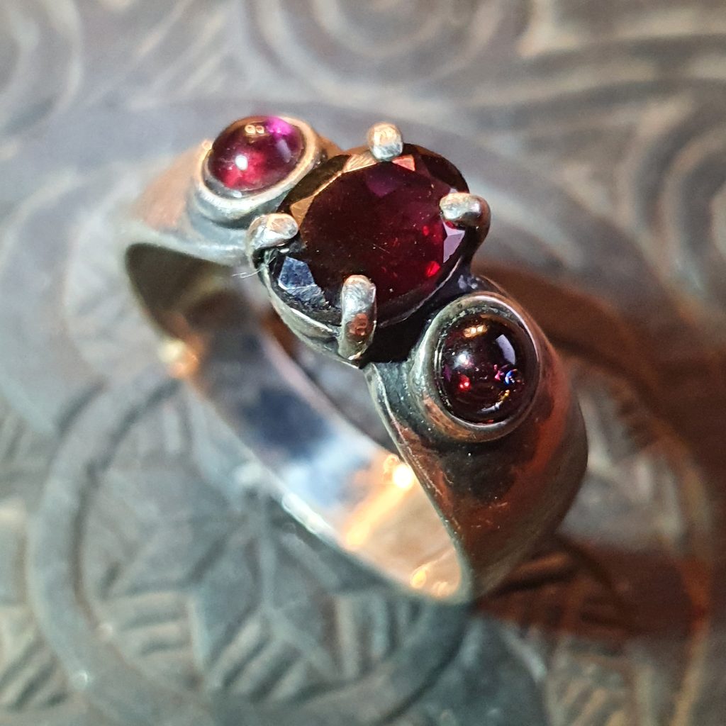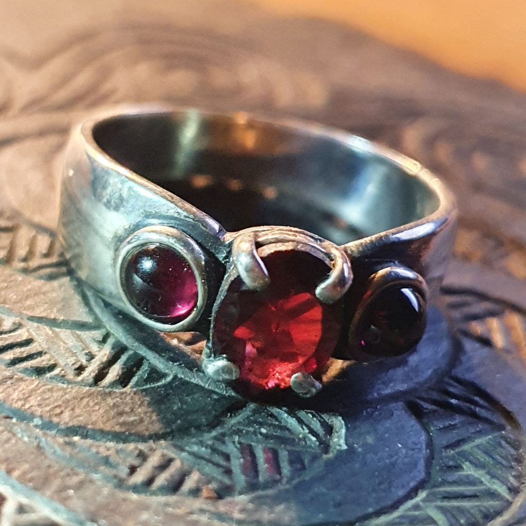 Cittadella luxusní stříbrný prsten s granátem. Prsten je inspirován středověkými prsteny z období gotického slohu.