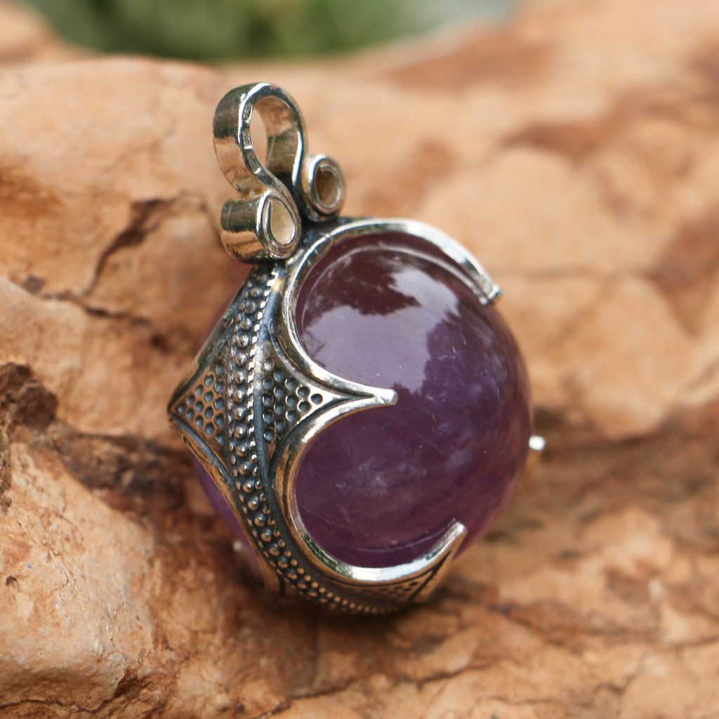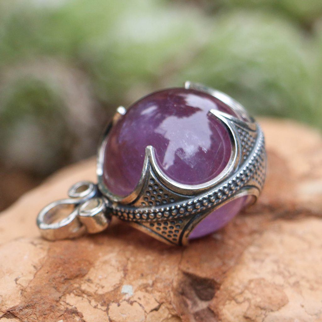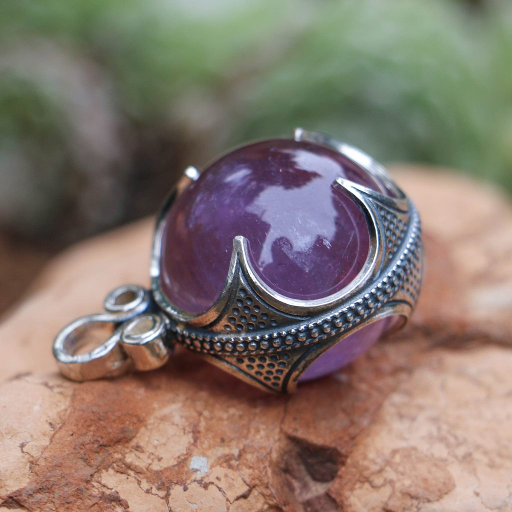Ametyst, vikinský přívěšek, Gotland, stříbro 925.