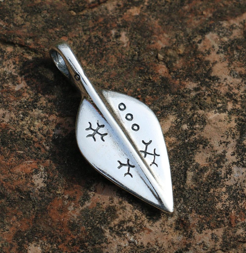 Stříbrný přívěšek Germánské kopí s runovými znaky inspirovaný hrotem germánského kopí nalezeného v bohaté hrobce z 2. století n. l. v Mušově na jižní Moravě.
