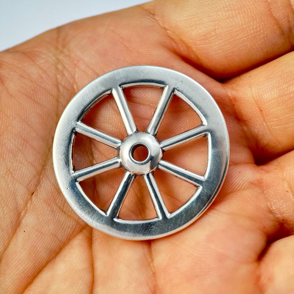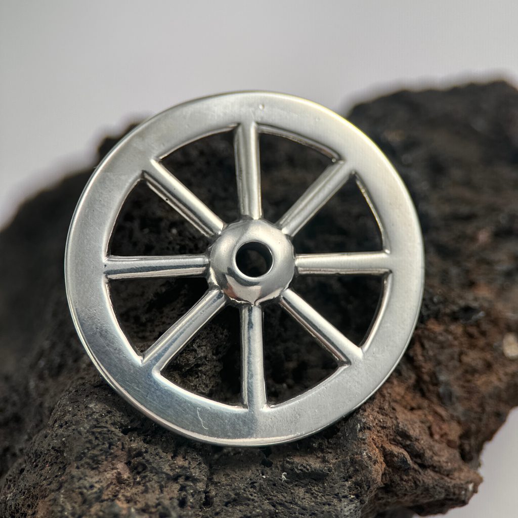 Replika amuletu TARANISOVA KOLEČKA, oppidum Stradonice. Oboustranný přívěšek naší produkce, Drakkaria je vlastníkem voskového modelu i odlévací formy.