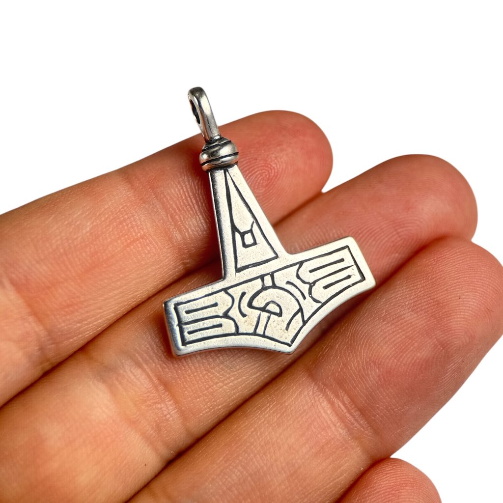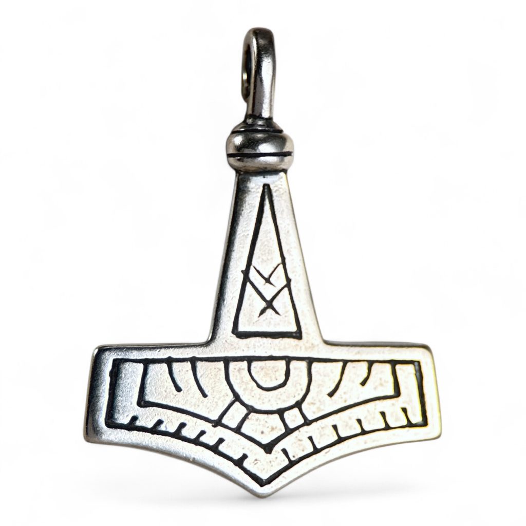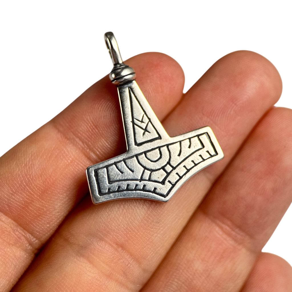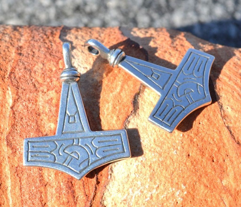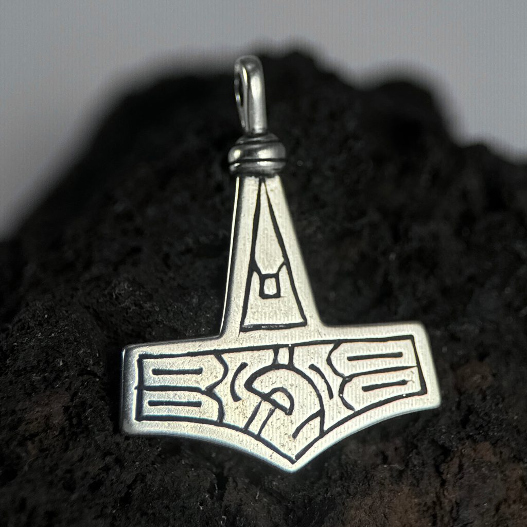 Replika Thorova kladiva z Gotlandu (Švédsko). Thorovo kladivo, neboli Mjöllnir, je magická zbraň patřící bohu stejného jména. Jako závěs na krku ho nosili zejména severští válečníci a mořeplavci - vikingové. Thórovo kladivo je nerozbitné, vždy trefí svůj cíl a poté se navrátí do ruky svému majiteli. Toto kladivo létá po obloze ve formě blesku. Mjöllnir znamená v překladu „drtič”. Thór jej nepoužíval jenom k zabíjení obrů, nýbrž s ním mohl oživovat své kouzelné kozly, žehnal s ním sňatkům, nebo oral pole. Aby Thor touto strašlivou zbraní mohl bezpečně vládnout, nosí kovové rukavice a opasek, který zdesetinásobuje jeho sílu.