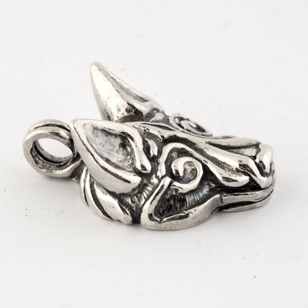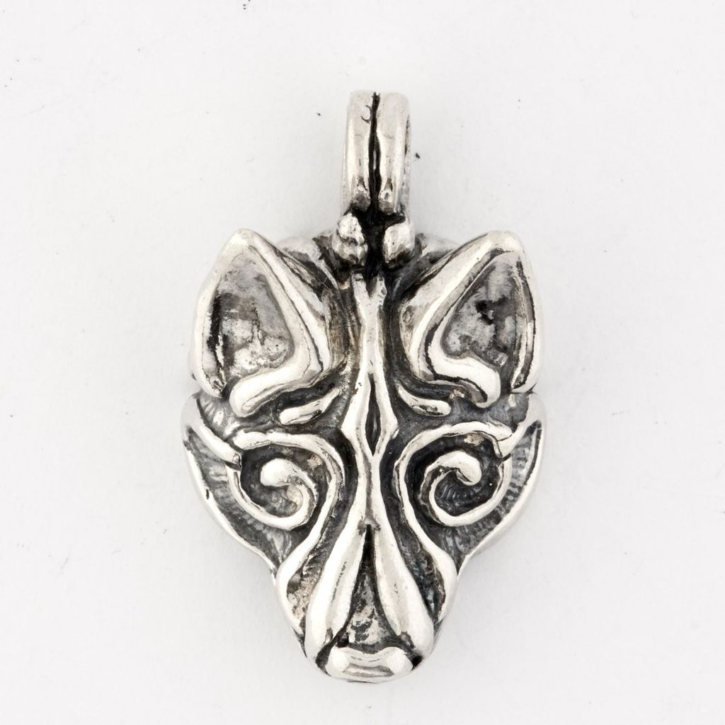 FENRIR, POHANSKÝ VLK, inspirováno vikinským uměleckým stylem Borre (podle stejnojmenné lokality v Norsku, 9. - 10. století). Fenrir je nejstarší syn boha Lokiho a obryně Angrbody. Bohové Fenrira spoutali, jeho osudem však je růst tak dlouho, dokud pouta nepovolí, a poté za Ragnaröku spolknout Ódina.