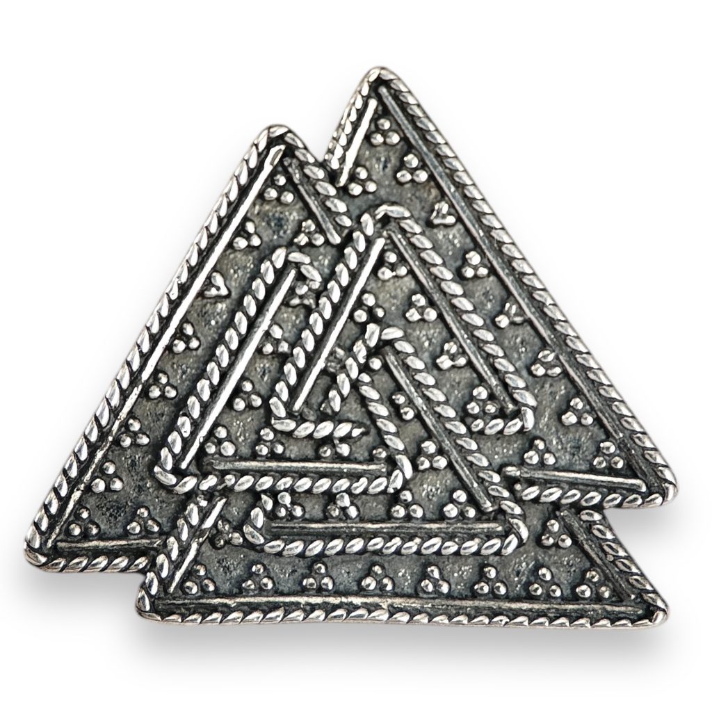 Vikinský stříbrný přívěšek. Valknut je jeden z nejdiskutovanějších a zároveň nejzáhadnějšch symbolů severské mytologie. Objevuje se na runových kamenech a na obrazových kamenech z vikinské doby na švédském ostrově Gotland a také na artefaktech z lodě hrobního naleziště Oseberg, Norsko. Záhadou tohoto symbolu je jeho původní význam. Valknut je složené slovo znamenající „uzel těch, kteří padli v bitvě“ a bylo zavedeno obyvateli dnešního Norska dávno po době vikinské.