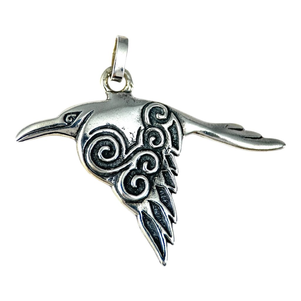 Stříbrný přívěšek vrány s motivem spirály z Newgrange, Irsko. Toto spojení není náhodné, vrány provázejí lidi i Bohy v tomto světě i ve světech jiných ... jsou našimi ochránkyněmi a dodávají nám sílu. Vrány jsou též spojené s mocnými Bohyněmi keltského světa (Badb, Macha a Nemain), s cestou do zásvětí, stejně tak jako s galskou Bohyní vody a zdraví Nantosueltou.