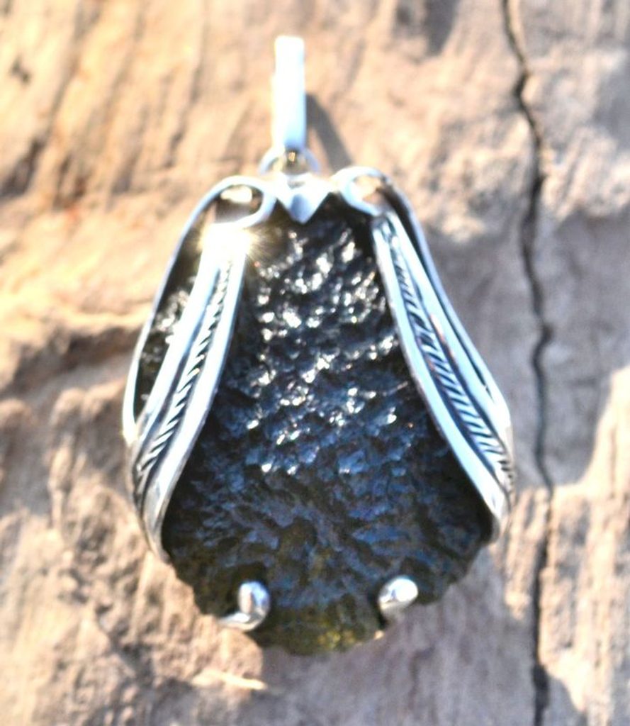 Surový jihočeský vltavín jako stříbrný přívěšek. Každý přívěšek je originál a Vy budete vlastnit jedinečný šperk. Zašleme Vám tedy trošku jiný kus než na fotce, který bude mít podobný styl i velikost. Na Vaši žádost Vám před odesláním pošleme? fotku skladových kusů k Vašemu výběru.