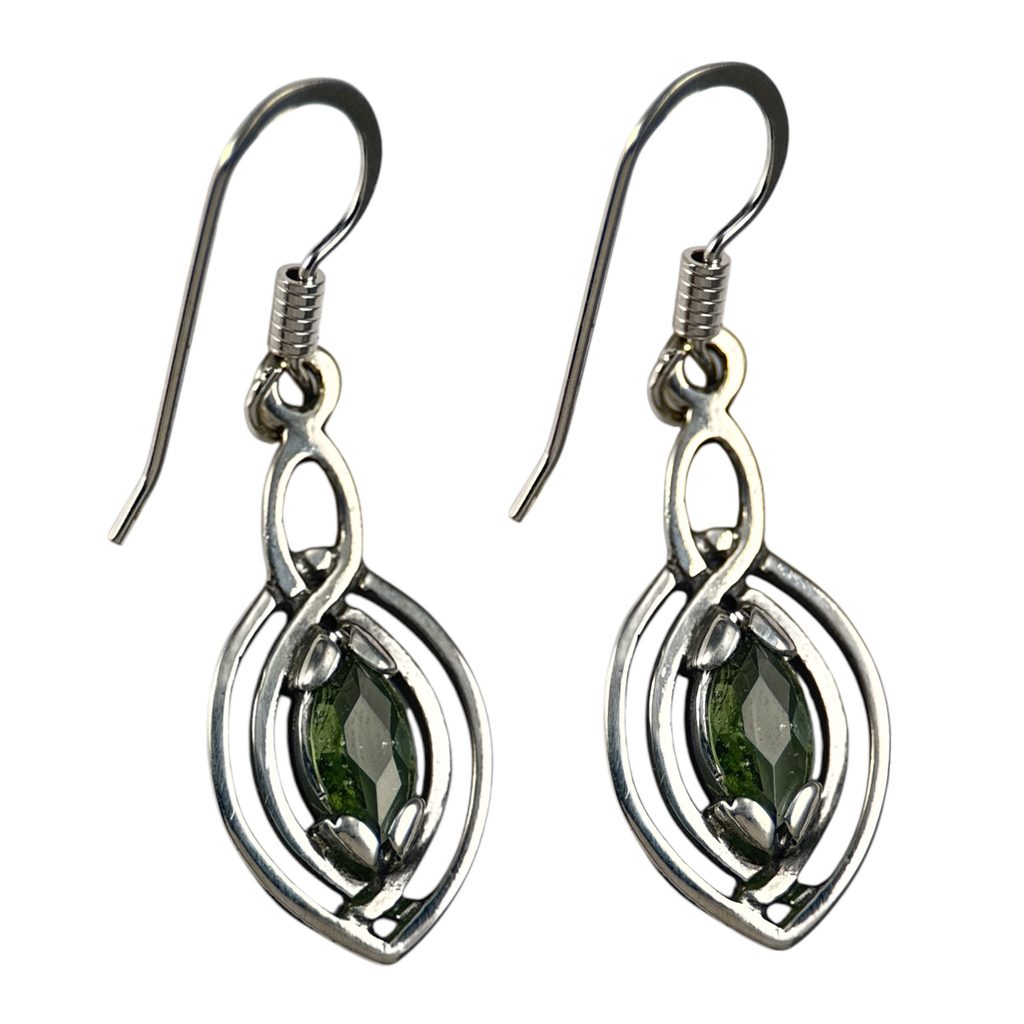 KIRA, stříbrné náušnice s vltavínem, Ag 925