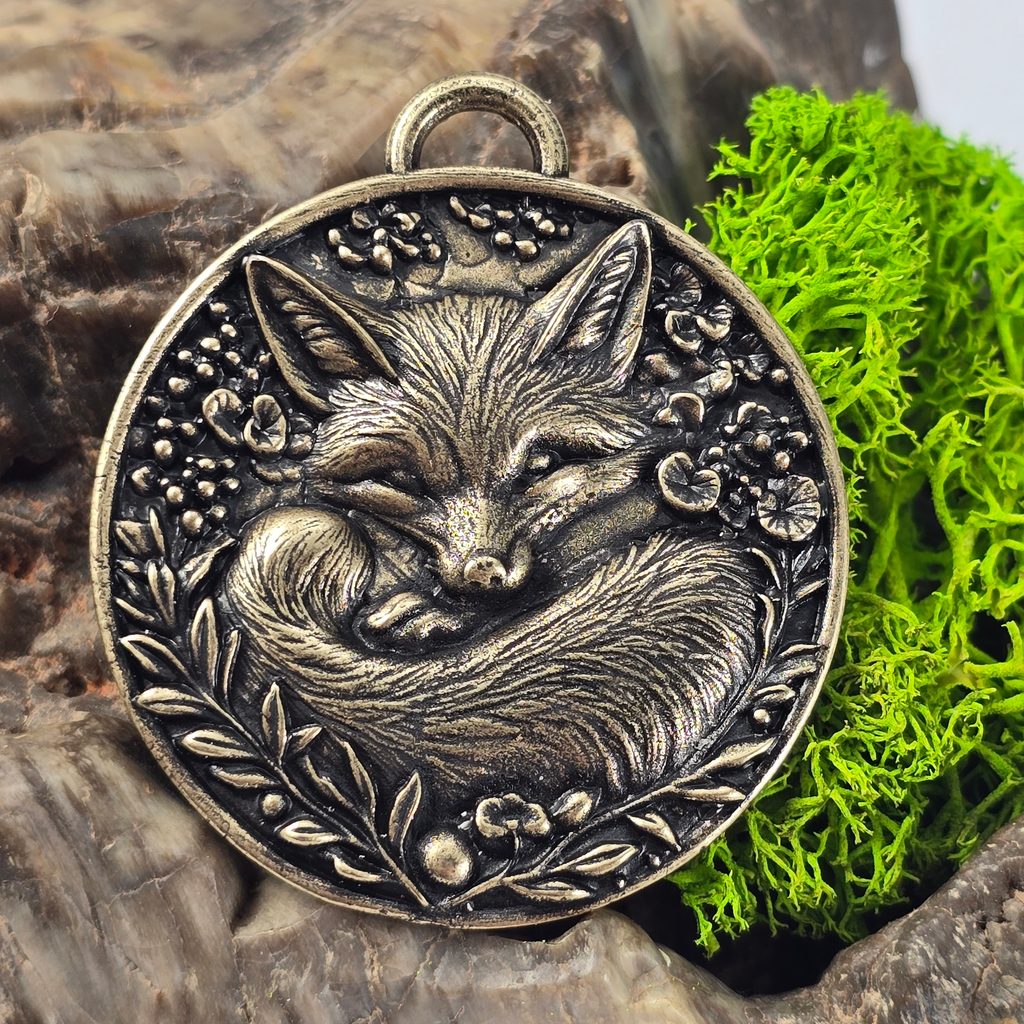 Roztomilý velký medailon se spící liškou v mechu a kapradí. Podívejte na ni, jak klidně odpočívá, ukrytá v bezpečí lesního podrostu. Šperk vyzařuje klid, jemnost a pohodu, připomíná ticho lesa a pomalé plynutí času v přírodě. Díky svému něžnému motivu potěší nejmenší milovníky zvířat i dospělé, kteří cítí spojení s přírodou a jejími tajemstvími. Medailon může symbolizovat odpočinek, ochranu a návrat k vnitřní rovnováze, a stane se tak krásným osobním talismanem pro každý den.