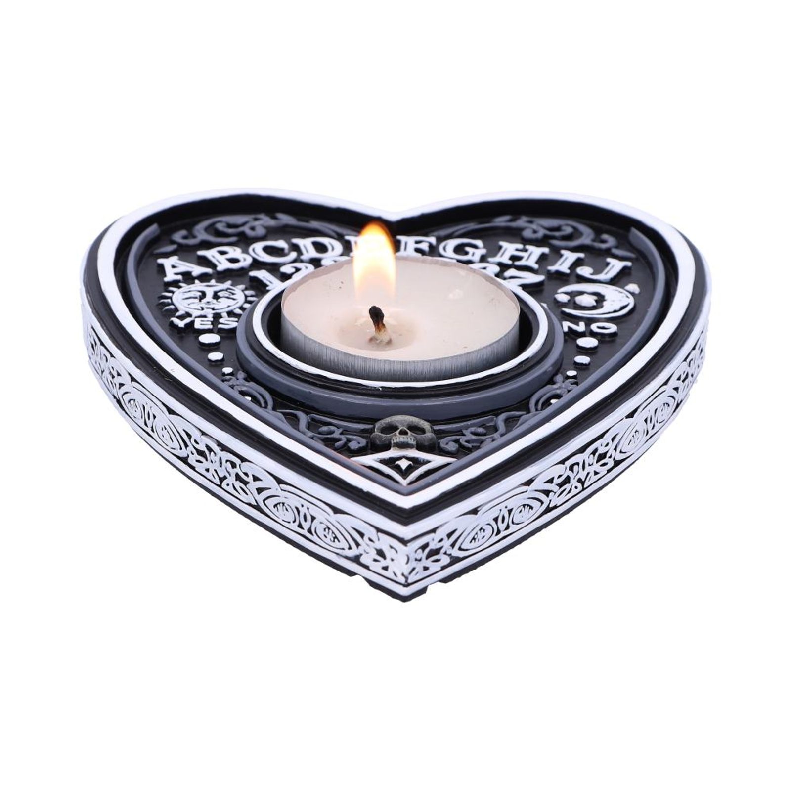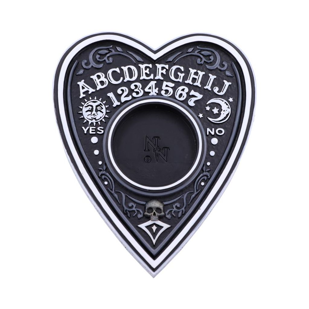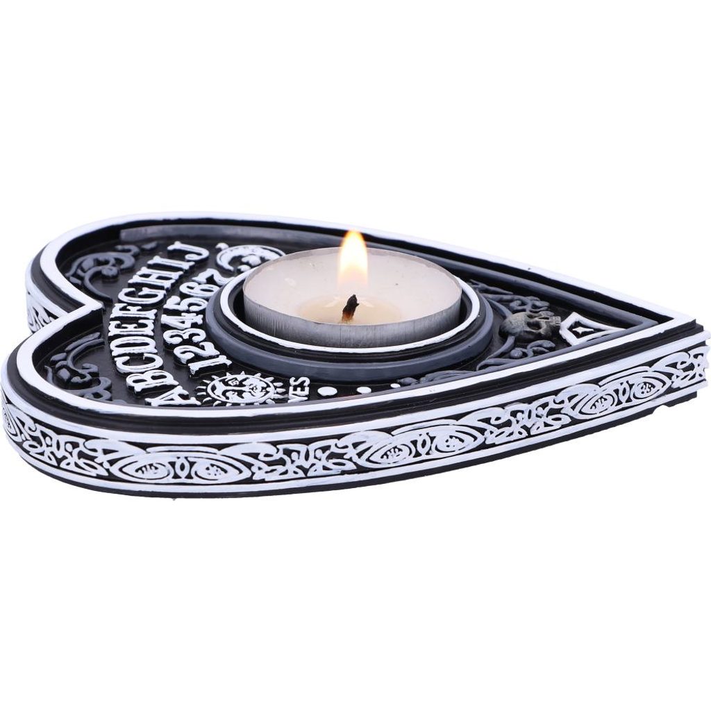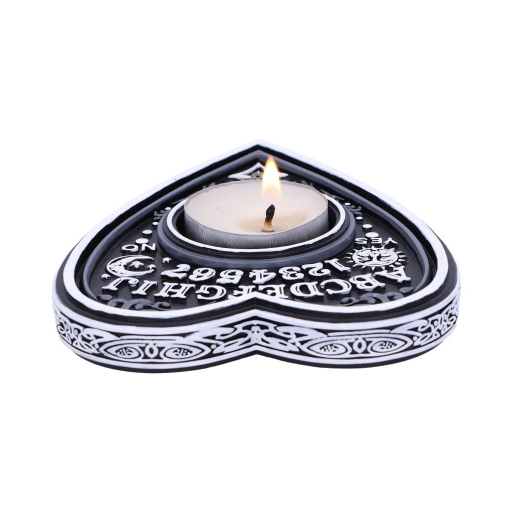Vneste do svého domova závan mystiky s tímto poutavým stojánkem na čajovou svíčku, jehož design vychází ze známé planchetty kapkového tvaru, tradičně používaného při komunikaci s duchy a světem.