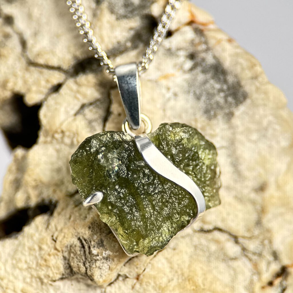 Srdce, přívěsek - vltavín, stříbro 925/1000