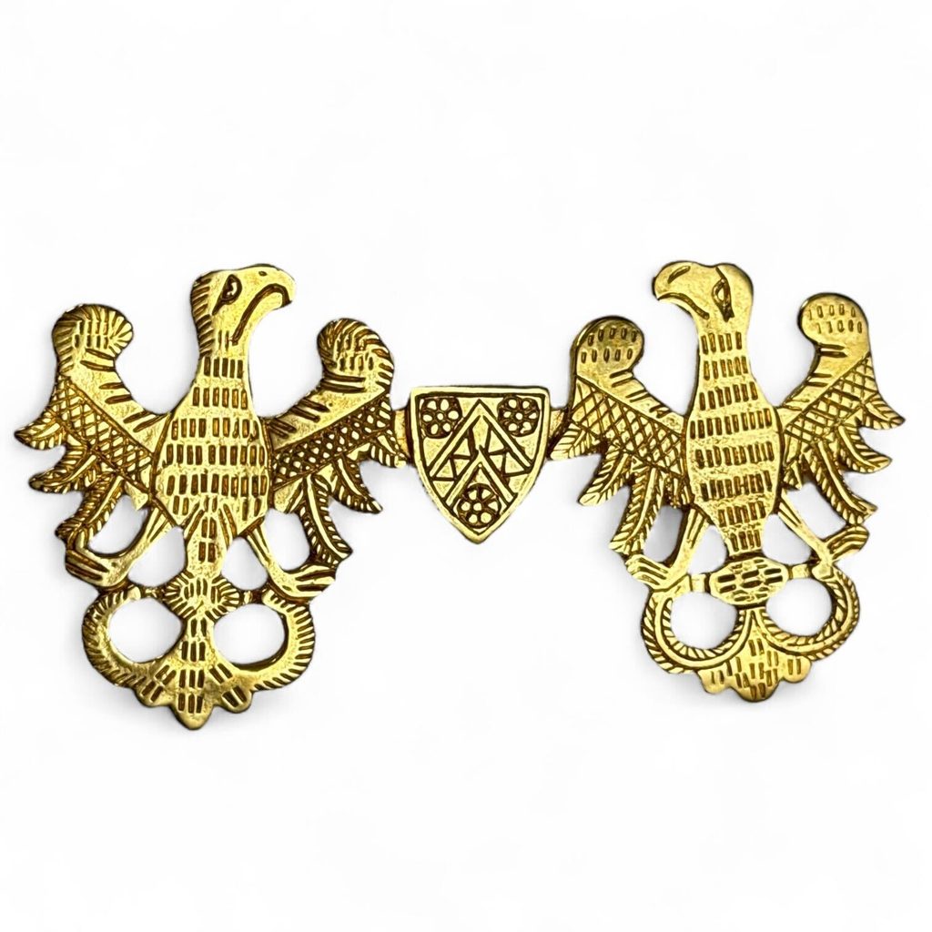 Tato přezka na plášť je historická replika používaná v Německu ve 14.–15. století, inspirovaná dochovanými archeologickými nálezy. Brož na plášť je vysoká přibližně 6 cm a je dodávána jako pár pro zavěšení pláště po obou stranách.