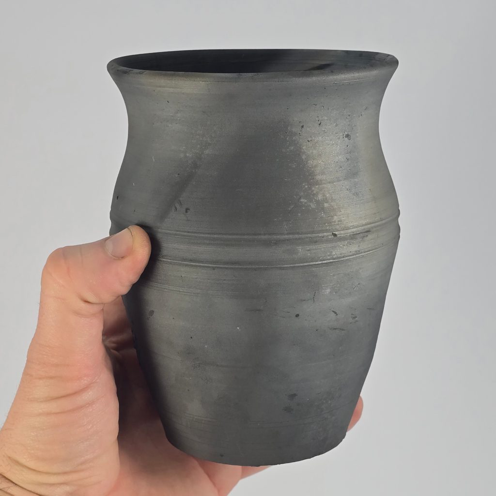 Při výrobě se nádoby vypalovaly v prostředí s omezeným přístupem kyslíku, což vedlo k tomu, že se v keramickém materiálu usazovaly saze a jiné zplodiny z kouře. Tento proces zakouření způsoboval tmavší barvu keramiky – od hnědé až po černou – a povrch získával typické zakouřené skvrny a někdy i matný nebo lesklý vzhled.